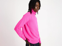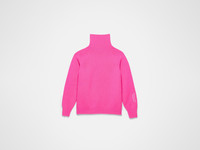 Turtleneck jumper in neon pink medium weight knit. Features 'JW Anderson made in Scotland' embroidery on the sleeve, finished with rib trims. Details - Colour: Neon Pink - Composition [Main]: 100% Wool - Made in: United Kingdom - Model [Wears]: Size S, 185cm Tall - SKU: KW1448YN0451311