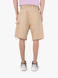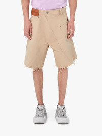 - Chino shorts - Relaxed fit and wide leg - Twisted silhouette with curved seams - Low waistband - Front patch pocket and side tab - Oversized style, designed to be worn loose. Take your usual size Additional Information - Colour: Beige - Composition: 100% Cotton - Heavy weight - Made in China
