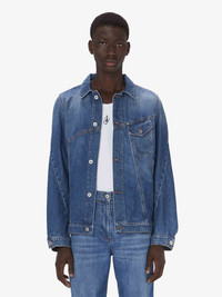 - Boxy fit denim jacket - Twisted panel construction - Contrast top stitching - Logo embossed pecan leather patch - Silver tone hardware - Fits true to size, take your normal size. Additional Information - Colour: Light Blue - Composition: 100% Cotton - Garment washed - Made in Italy