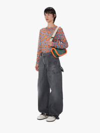 - Relaxed fit jeans - Twisted silhouette - Curved seams - Low waist - Carpenter loop - Front patch pocket with anchor profile stitch - Logo embossed black leather patch - Tonal topstitching - Gunmetal hardware - Oversized style, designed to be worn loose. Take your usual size. Additional Information - Colour: Grey - Composition: 100% Cotton - Garment washed - Made in Italy