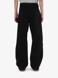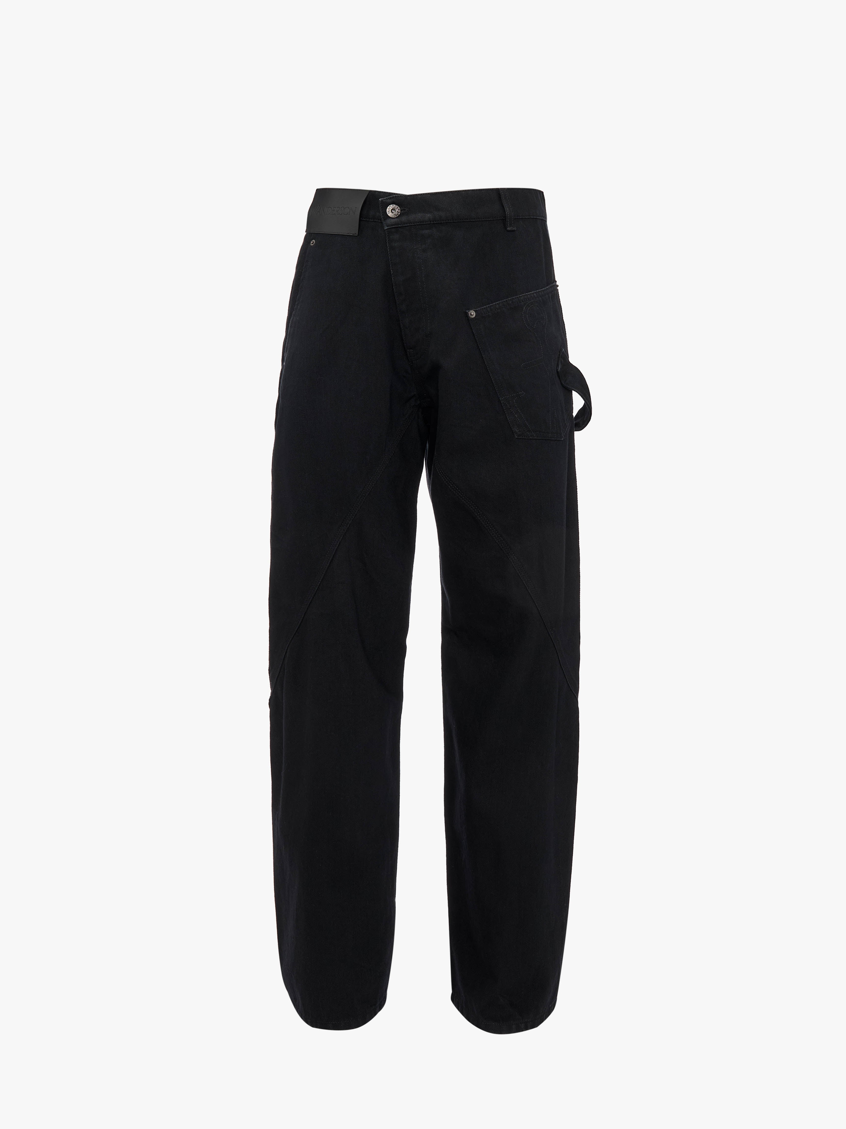 - Signature workwear jeans with twisted silhouette - Curved seam design - Low-rise waistband - Frontal patch pocket with signature embroidered anchor motif - Tonal top-stitching - Relaxed fit - take your usual size Additional Information - Colour: Black - Composition - Main: 100% Cotton - Made in Italy