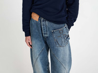 Crafted in Hiroshima, Japan, developed in collaboration with expert Japanese denim makers. Twisted workwear denim jeans in mid blue. Features a large leather logo patch and anchor stitched pocket. Finished with engraved metal shank buttons, logo rivets and orange binding. Details - Colour: Mid Blue - Composition [Main]: 100% Cotton - Composition [Lining]: 100% Cotton - Made in: Italy - - Model [Wears]: Size 30, 184cm Tall - SKU: DT0126PG1849172