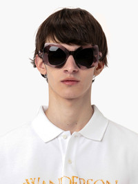- bstract butterfly style frame, complete with twisted temple detailing. - Abstract acetate frame with structural metal detailing - Branded logo detailing in contracting metallic tone - Temple Tips: anchor bill shape - Flat twist detailing across the bridge - Unisex Details - Colour: Pink - Composition - Main: 100% Mazzucchelli Acetate - Frame: Made in China - Lenses: Made in Germany 100% UV Protection (Zeiss Certified) SKU: EW0011FA0426093