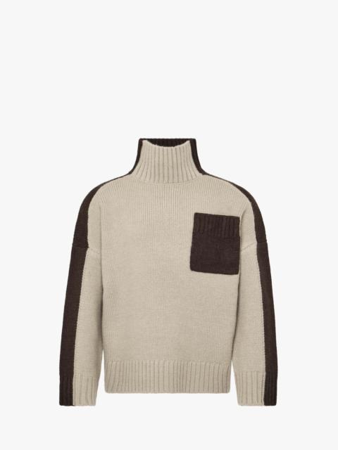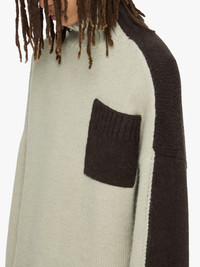 - Signature relaxed fit polo neck jumper with contrasting two-tone panel and patch pocket - Tonal Anchor stitching - Reverse jersey box with black anchor embroidery on centre back - Ribbed cuffs, neck and hem - Unlined Details - Colour: Nougat/Chocolate - Composition: 45% Wool, 37% Alpaca Wool, 18% Acrylic - Heavy weight knit fabrication - Made in: China - SKU: KW1308YN0367166 - Model Height: 185cm, Model Wearing Size: S