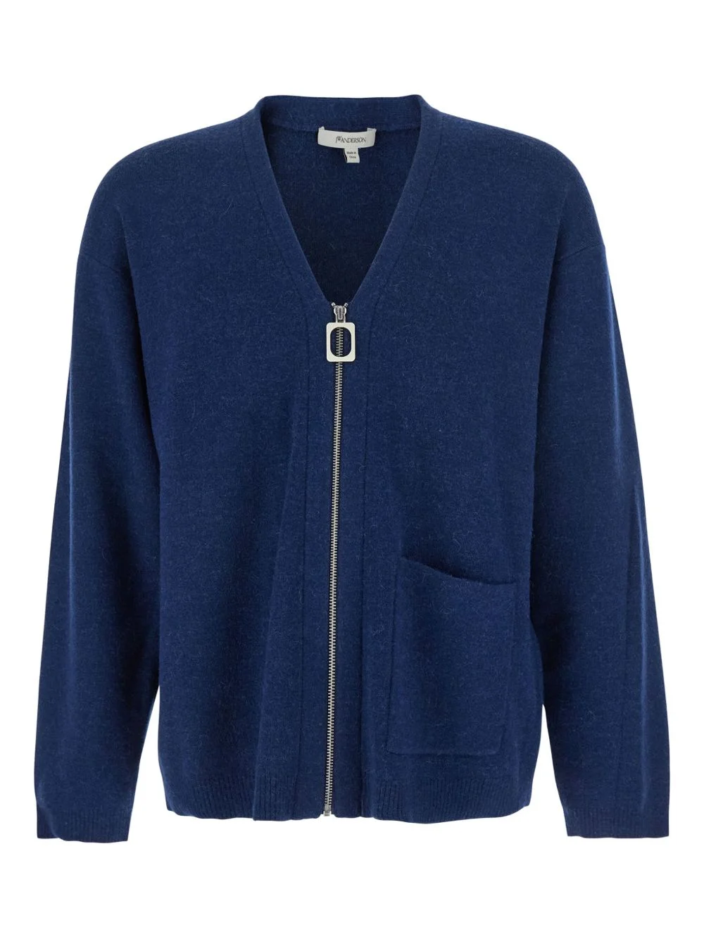 V-neck zip-up cardigan Highlights - Blue - V-neck - Front zip fastening - Front patch pocket - Long sleeves - Ribbed cuffs and hem Imported Composition Wool 52%, Polyamide 31%, Alpaca 17% Washing instructions Read Manufacturer Guidelines