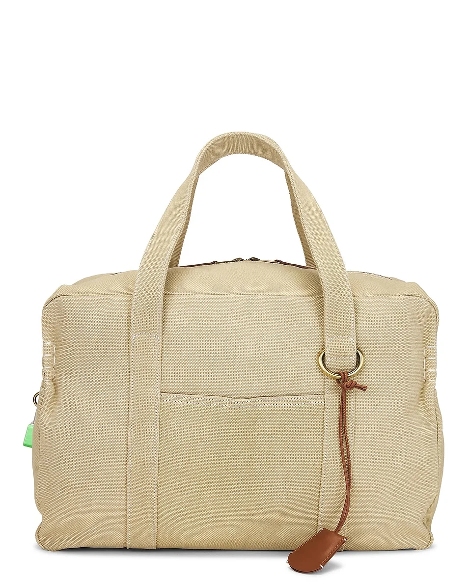 Details - Unlined canvas fabric with leather trim - Top zip closure - One main compartment - One interior slip pocket - One exterior slip pocket - Measures approx 51 cm W x 30 cm H x 23 cm D - Shoulder strap with a 23 cm drop - Made in Spain - Our Style No. JWAF-MY10 - Manufacturer Style No. HB0771-FA0484