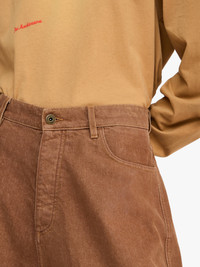 - Denim shorts with aged effect wash - Wide leg - Low rise - Logo patch print on the back waistband - Relaxed fit - take your usual size Details - Colour: Rust - Composition: 100% Cotton - Mid weight Denim Fabrication - Side length: 66cm - Made in: Italy - SKU: DT0114PG1756405