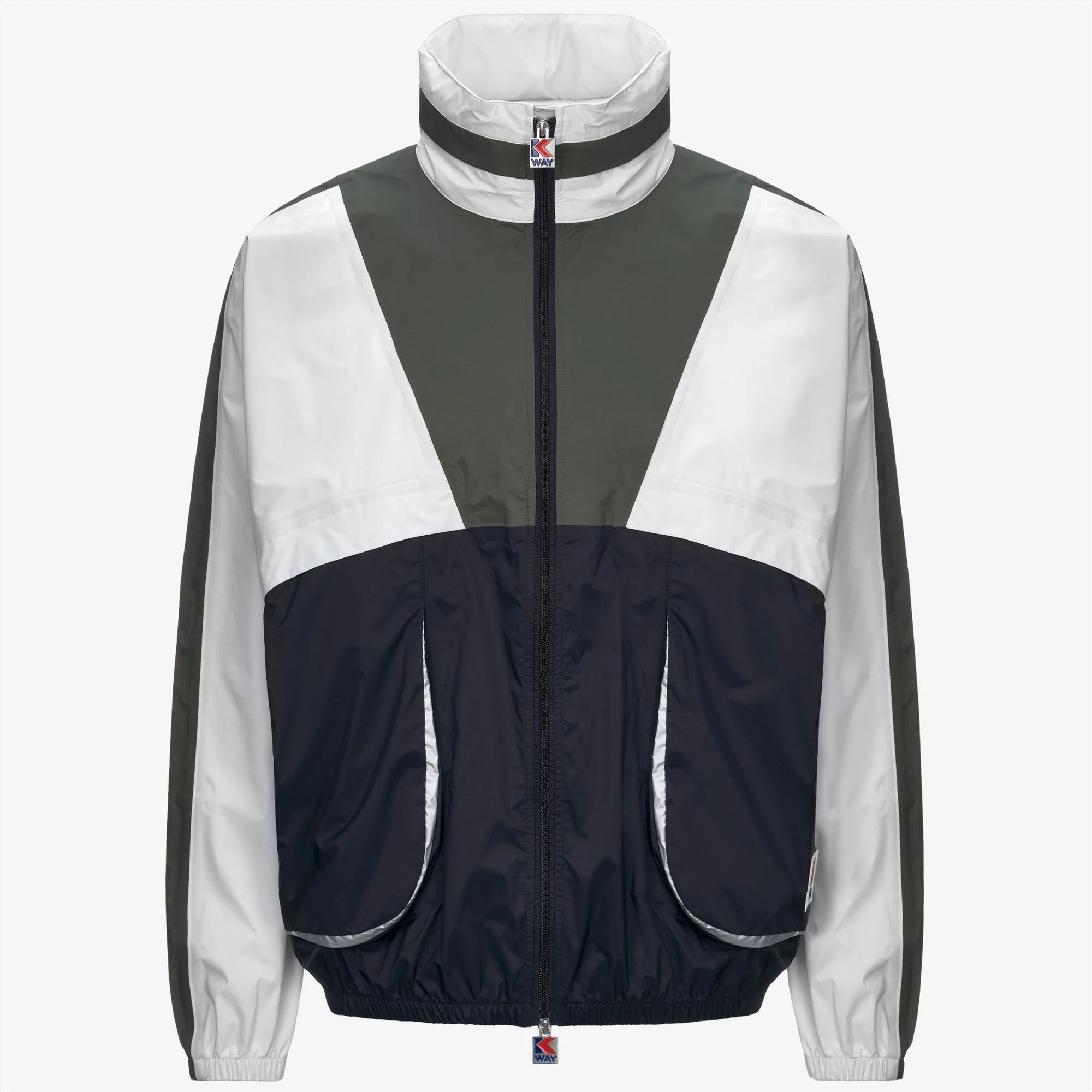 Blue Green Unisex Short Jacket with Concealed Hood and Retro Design Oh FZ is a subtly oversized unisex short jacket, inspired by 80s and 90s sportswear reinterpreted from a lifestyle perspective. The design reconnects to K-Way's sporting past with the use of the brand's original logo, applied to the garment and embossed on the zip closure puller. Made from ripstop nylon in different colour block variations, it features silver inserts under the side pockets made from recycled fabric. The jacket has a concealed hood integrated into the high collar with snap buttons, elasticated cuffs, and revamped details such as transparent heat-taped seams. - Recycled ripstop nylon, waterproof, windproof, breathable - Transparent heat-taped seams - Concealed hood integrated in the collar - Full zip closure - Zip puller with K-Way original logo - Silver nylon inserts - Side pockets with snap buttons - Regular fit - 3D logo patch Features Description: Jackets, Short Gender: Unisex Season: Spring, Summer Composition Entire: 100% Recycled Nylon Style: K8134KW - Color: B03