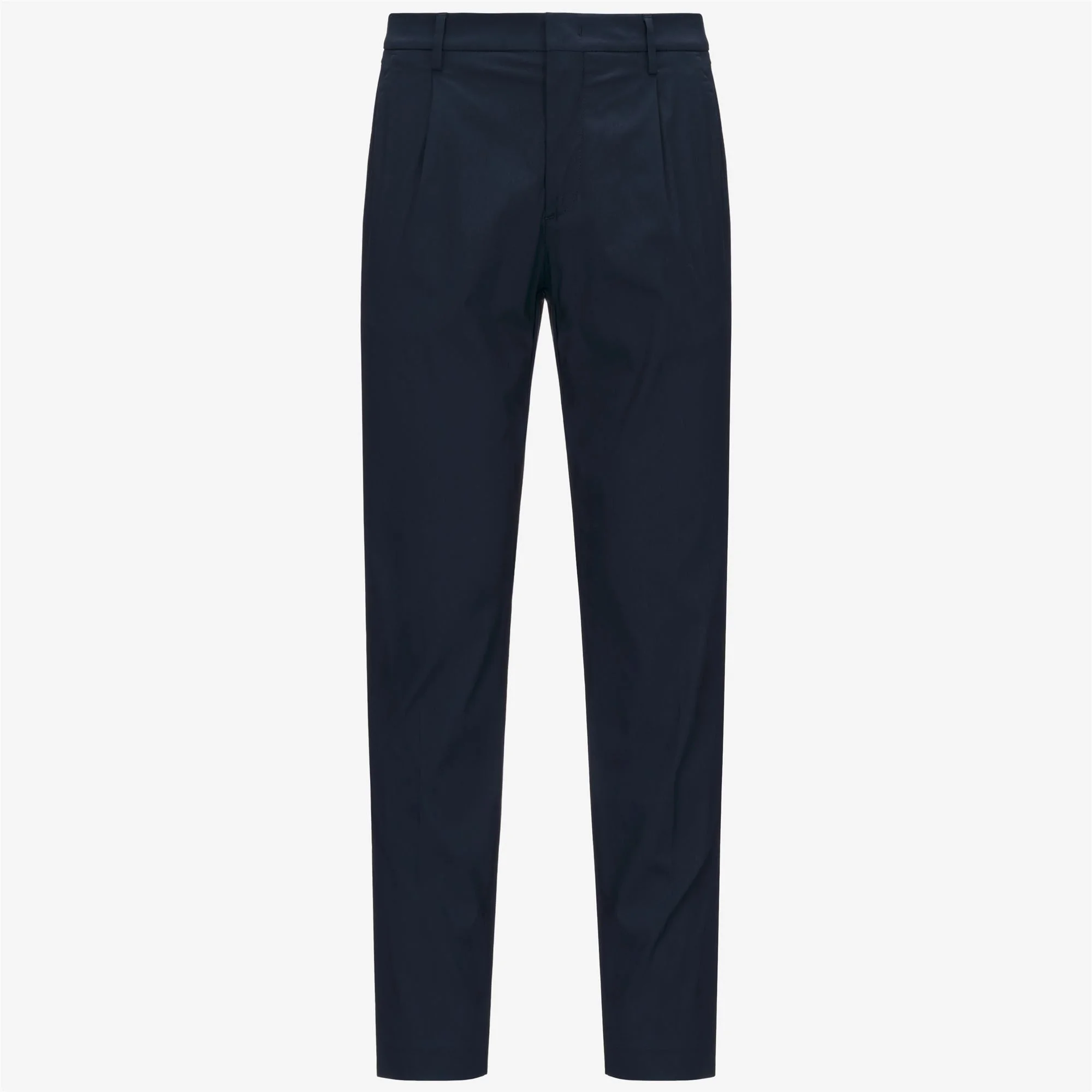 Blue Men's Chino Pants with Stretch Gabardine Fabric Ailton men’s chino trousers feature a casual, versatile look with a straight-leg cut. Made from stretch peach-feel gabardine and finished with a concealed hook-and-zip closure, they offer comfort and unrestricted movement. - Straight-leg chino style - Stretch peach-feel gabardine fabric - Zip fastening with concealed hook - Side pockets - Regular fit - K-Way tape detail on the back pocket Features Description: Pants, CHINO Gender: Man Season: Fall, Winter Composition Entire: 96% Cotton, 4% Elastane Style: K61346W - Color: K89