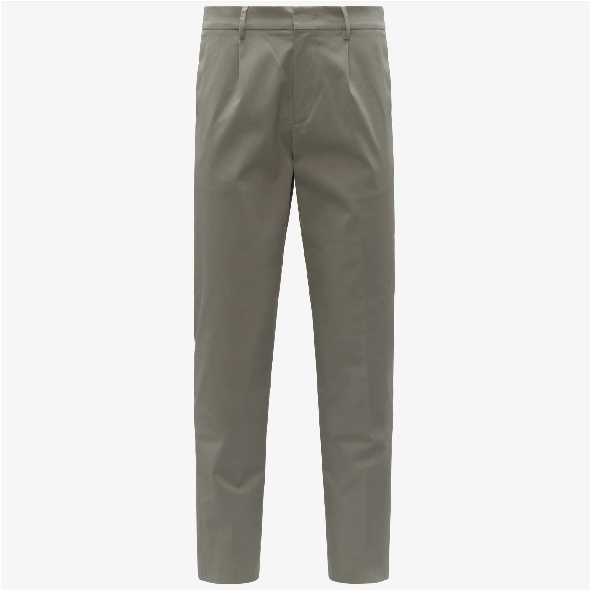 Green oak Men's Chino Pants with Stretch Fabric and Side Pockets Ailton men’s chino trousers feature a casual, versatile look with a straight-leg cut. Made from stretch peach-feel gabardine and finished with a concealed hook-and-zip closure, they offer comfort and unrestricted movement. - Straight-leg chino style - Stretch peach-feel gabardine fabric - Zip fastening with concealed hook - Side pockets - Regular fit - K-Way tape detail on the back pocket Features Description: Pants, CHINO Gender: Man Season: Fall, Winter Composition Entire: 96% Cotton, 4% Elastane Style: K61346W - Color: 633