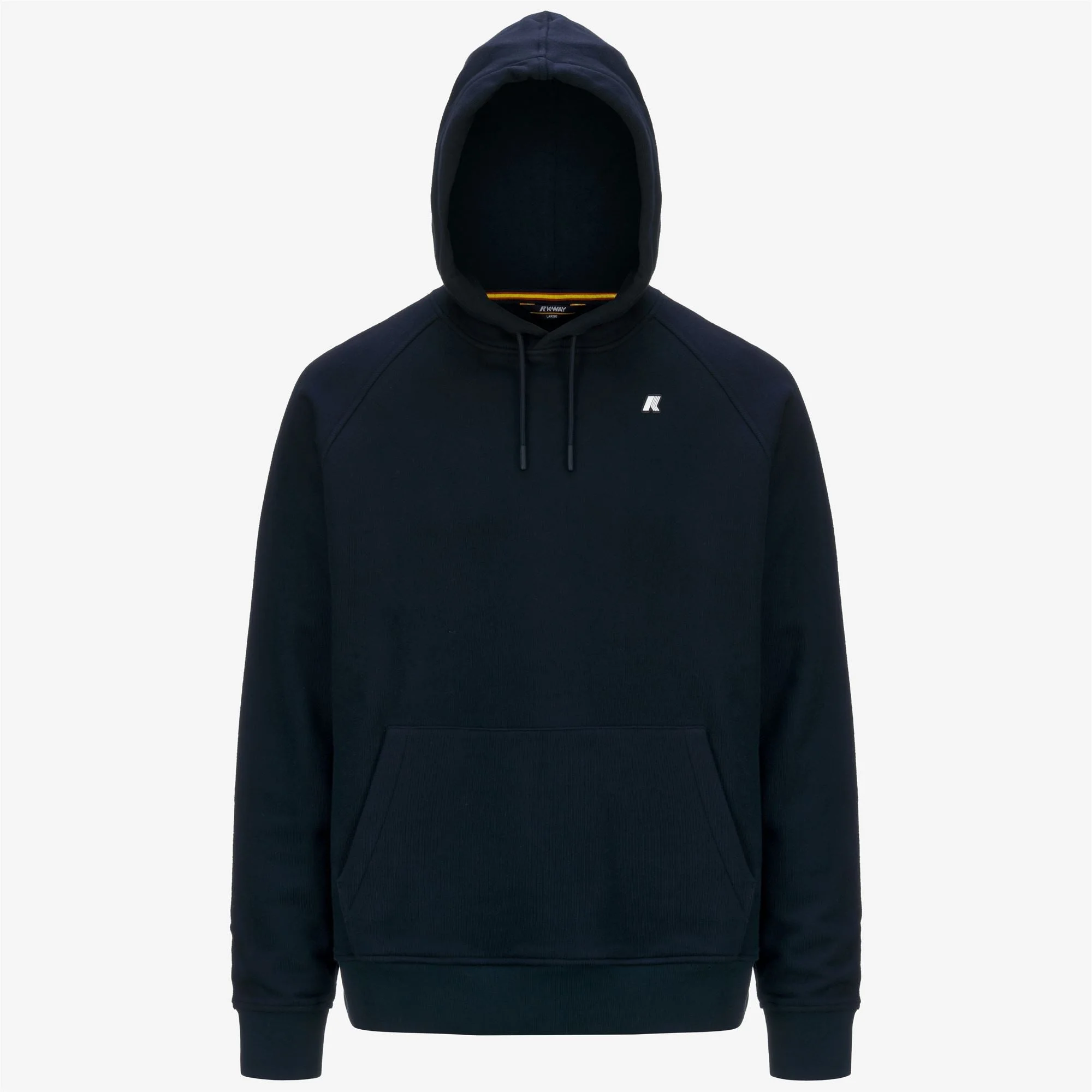 Blue Men's Fleece Jumper for Athleisure and City Wear Anthony is a men’s athleisure sweatshirt sporting a versatile and functional look, suitable for sports and leisure time. The style is made from cotton fleece with a very warm and cozy skin feel, featuring a comfortable brushed interior. This garment is characterized by K-Way full zip closure, adjustable hood, and a kangaroo pocket. - Warm cotton fleece fabric with brushed interior - Adjustable drawstring hood - Ribbed hem and cuffs - Full zip closure at the front - Kangaroo pocket - Regular fit - Silicone logo patch Features Description: Fleece, Jumper Gender: Man Season: Fall, Winter Composition Entire: 92% Cotton, 8% Polyamide Style: K8133JW - Color: K89