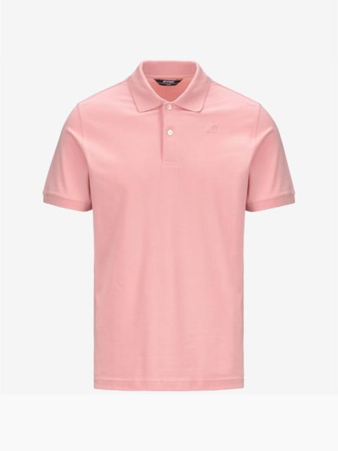 Ash Pink Men's Stretch Pique Polo Shirt for City Wear Amedee is a short-sleeved men's polo made from stretch pique cotton, ensuring a good fit and freedom of movement. It is characterized by a clean, modern look with tone-on-tone silicone logo, branded button flap, ribbed collar and cuffs, and side vents for superior comfort. - Stretch pique fabric - Ribbed collar and hem - Two-button flap - Slim fit - Tone-on-tone silicone logo patch Features Description: Polo Shirts, Polo Gender: Man Season: Spring, Summer, Fall, Winter Composition Entire: 95% Cotton, 5% Elastane Style: K5127BW - Color: W7C