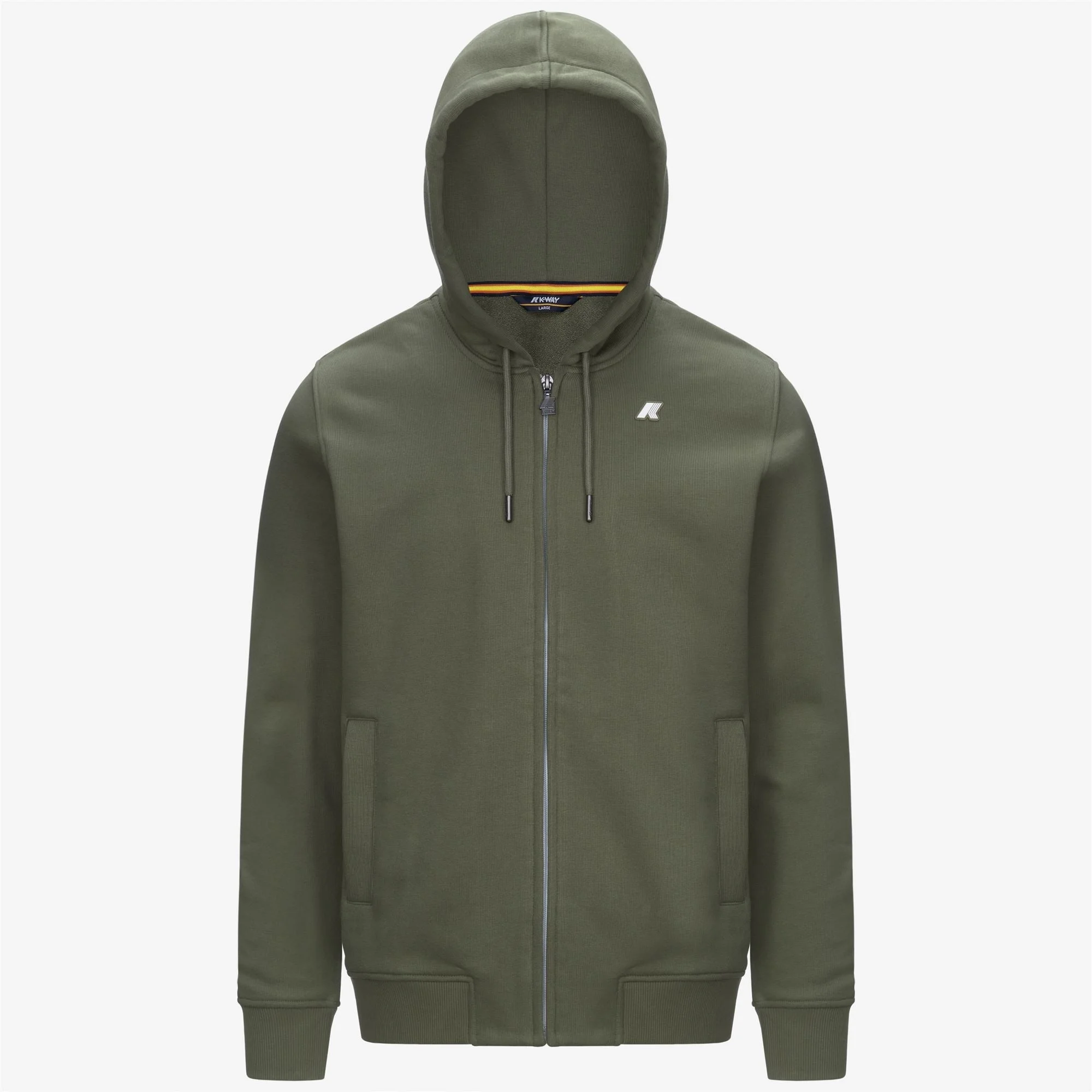 Lichen Green Men's Casual Fleece Hoodie with Adjustable Hood Anthony is a men's casual hoodie, perfectly suited to complement many sporty looks. It is made from soft-textured cotton French terry and features a simple design with an adjustable hood, signature K-Way zip closure and two inserted pockets. - Soft-textured cotton French terry fabric - Adjustable hood - Ribbed edges - Zip closure - 2 inserted pockets - Regular fit - White silicone logo Features Description: Fleece, Jacket Gender: Man Season: Spring, Summer Composition Entire: 92% Cotton, 8% Polyamide Style: K31364W - Color: V15