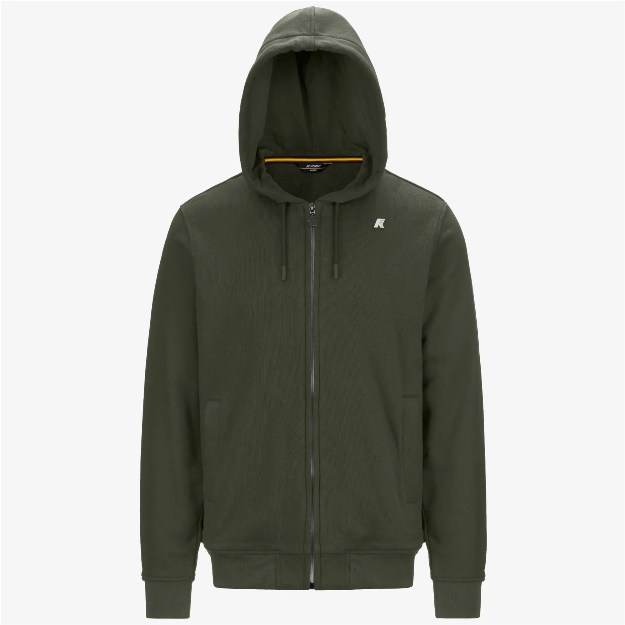 Dark green Men's Fleece Jacket with Adjustable Hood Anthony is a men’s athleisure sweatshirt sporting a versatile and functional look, suitable for sports and leisure time. The style is made from cotton fleece with a very warm and cozy skin feel, featuring a comfortable brushed interior. This garment is characterized by K-Way full zip closure, adjustable hood, and two inset pockets that complement its essential design. - Warm cotton fleece fabric with brushed interior - Adjustable drawstring hood - Ribbed hem and cuffs - Full zip closure at the front - 2 inset pockets - Regular fit - Silicone logo patch Features Description: Fleece, Jacket Gender: Man Season: Fall, Winter Composition Entire: 92% Cotton, 8% Polyamide Style: K8133IW - Color: WMR