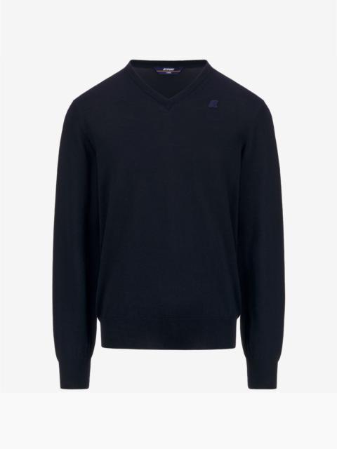Blue Men's Merino Wool V-Neck Pullover Knitwear Antoine is a men’s V-neck pullover crafted from warm, easy-care merino wool. Its classic cut features a regular fit and ribbed trims for a comfortable feel. - Easy-care merino wool - Machine washable - V-neck - Ribbed collar, cuffs and hem - Regular fit - Tone-on-tone logo patch Features Description: KNITWEAR, Pull Over Gender: Man Season: Fall, Winter Composition Entire: 100% Wool Style: K2142DW - Color: K89