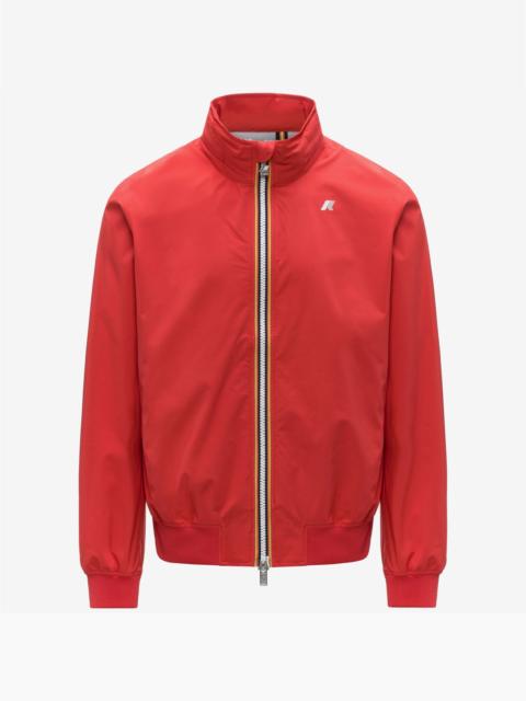 Arsene is a men's short jacket designed for transitional weather. Made from stretch technical fabric with an insulating membrane and an all-over silver K-Way logo print lining, it allows for unrestricted movement and provides protection from wind and rain, with a water resistance of up to 10,000 mm water column. The jacket features a hidden removable hood and elasticated ribbed trims for a snug, comfortable feel. - Waterproof, water-repellent, windproof and breathable recycled stretch polyester fabric - Logo-printed inner membrane - Heat-taped seams - Double-layer collar with ribbed insert - Packable hood concealed in collar - Zip fastening - Ribbed cuffs and hem - 2 zip pockets - Slim fit - White printed logo Features Description: Jackets, Short Gender: Man Season: Spring, Summer, Fall, Winter Composition Entire: 24% Poliuretane, 76% Recycled Polyester Style: K3157BW - Color: K89