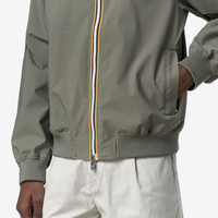 Arsene is a men's short jacket designed for transitional weather. Made from stretch technical fabric with an insulating membrane and an all-over silver K-Way logo print lining, it allows for unrestricted movement and provides protection from wind and rain, with a water resistance of up to 10,000 mm water column. The jacket features a hidden removable hood and elasticated ribbed trims for a snug, comfortable feel. - Waterproof, water-repellent, windproof and breathable recycled stretch polyester fabric - Logo-printed inner membrane - Heat-taped seams - Double-layer collar with ribbed insert - Packable hood concealed in collar - Zip fastening - Ribbed cuffs and hem - 2 zip pockets - Slim fit - White printed logo Features Description: Jackets, Short Gender: Man Season: Spring, Summer, Fall, Winter Composition Entire: 24% Poliuretane, 76% Recycled Polyester Style: K3157BW - Color: V15
