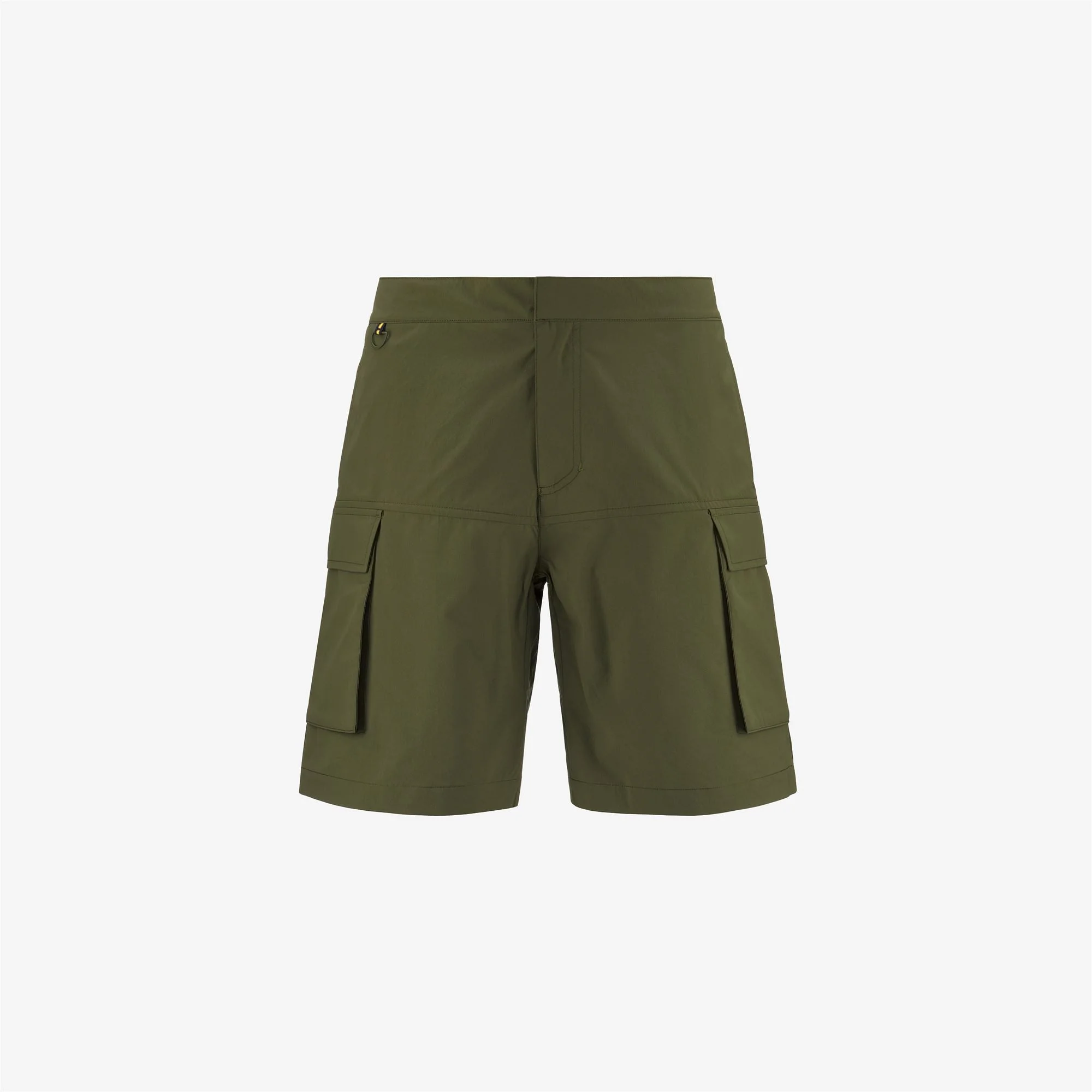 Cypress Green Men's Cargo Shorts for City Wear Bastyel is a men's bermuda made from lightweight technical fabric with a versatile design. Comfortable and easy to style with summer looks, these shorts feature a cargo design with side utility pockets, an elasticated waist, and a practical custom hook with K-Way tape for hanging small items during outdoor activities. Features Description: Shorts, Cargo Gender: Man Season: Spring, Summer Composition Entire: 100% Polyester Style: K8132BW - Color: H11