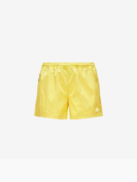 Orange Men's Quick-Dry Swimming Trunks with Elastic Waistband The Breezel short swimming trunks boast a classic boxer fit and a versatile, functional design. Crafted from quick-dry nylon, these swim shorts feature an elasticated waistband and rear details in K-Way's iconic colours. - Made from quick-dry stretch nylon - Mesh lining - Elasticated waistband - Side pockets - Back snap button pocket - Inside coin pocket - Regular fit - Silicone logo Features Description: Bathing Suits, Swimming Trunks Gender: Man Season: Spring, Summer Composition External: 5% Elastane, 95% Nylon Lining: 100% Polyester Style: K2128DW - Color: 667