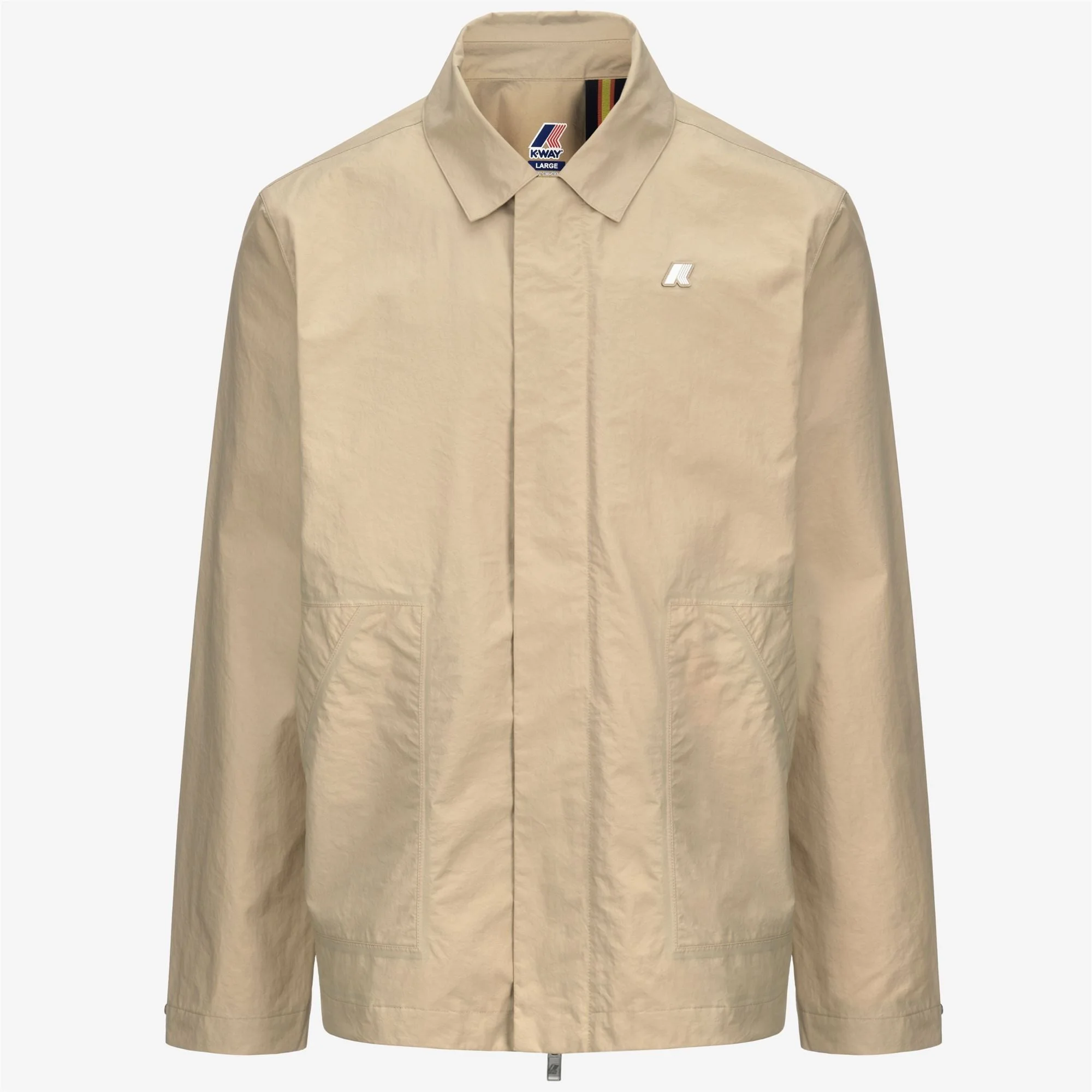 Beige Brown Men's Water-Repellent Short Jacket for City Wear Broen is a men's short jacket, a city-ready option featuring a slightly crinkled textile appearance due to the use of technical cotton blend fabric. Designed for the spring season yet able to withstand wind and moderate rainfall, this jacket has a regular fit, flap-covered zip closure, classic collar and two side patch pockets. - Water-repellent cotton nylon fabric - Heat-taped seams - Flap-covered zip closure - Adjustable cuffs - 2 patch pockets - Regular fit - Silicone logo Features Description: Jackets, Short Gender: Man Season: Spring, Summer Composition Entire: 34% Cotton, 66% Nylon Style: K61382W - Color: WBJ