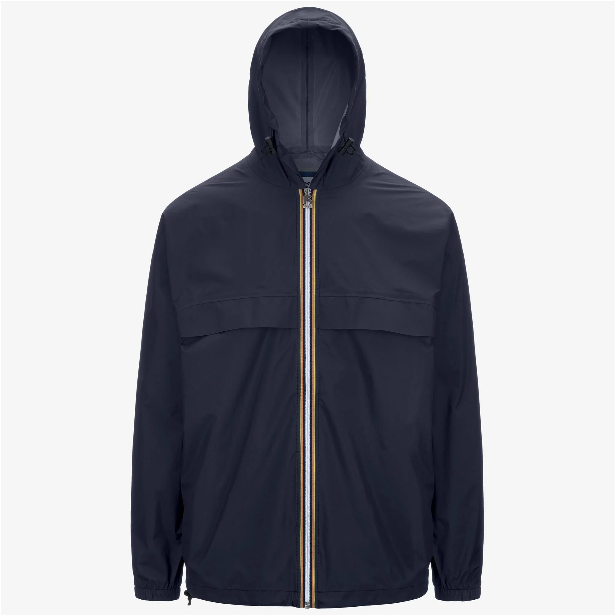 Blue Unisex Packable Rain Jacket with Adjustable Hood Claude is a unisex short jacket that pays homage to the first iconic K-Way packable rain jacket, designed in 1965. It features a full zip closure in the brand's signature colours with the original puller from the 1965 jacket, an adjustable drawstring hood, and elasticated cuffs for effective rain and wind protection. The extremely compact volume of this jacket when folded into its pocket makes it the perfect companion to pack in your bag or backpack to easily withstand unexpected weather changes. - Recycled ripstop nylon, waterproof, windproof, breathable - Packable - Heat-taped seams - Adjustable hood with drawstring - Full zip closure - 1965 K-Way zip puller - Elasticated cuffs - Zipped packable pocket - Adjustable drawstring bottom hem - Regular fit Features Description: Jackets, Mid Gender: Unisex Season: Spring, Summer Composition Entire: 100% Recycled Nylon Style: K21429W - Color: K89