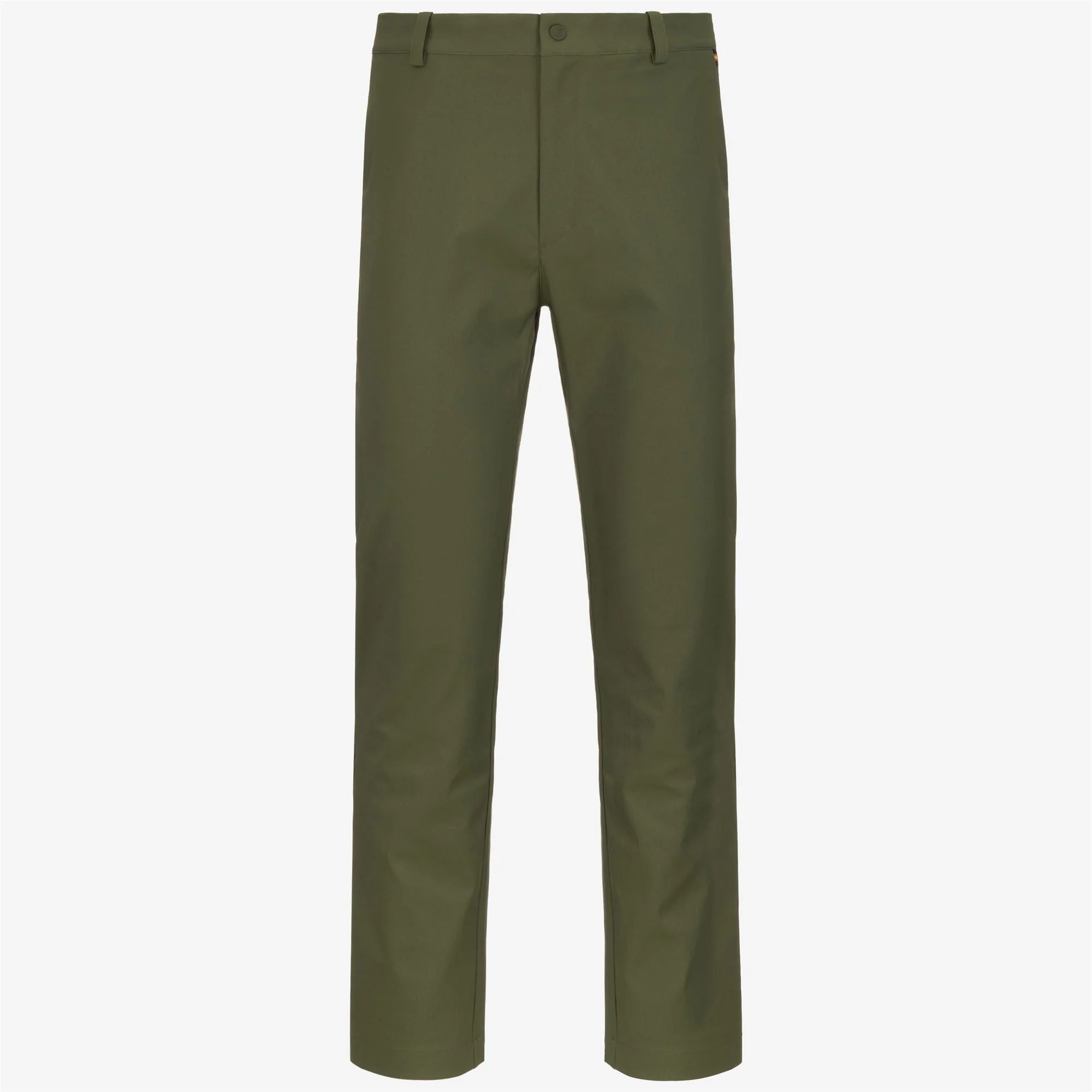 Cypress Green Unisex Chino Pants for Casual City Wear The Elia chino pants embody K-Way style with their classic, clean, and functional design. This garment, featuring a unisex and comfortable fit, is made from a soft, velvety fabric, ideal for complementing both casual and formal everyday looks. The trousers, which feature a zip and button closure, belt loops at the waist, side pockets, and a rear welt pocket, also boast the iconic K-Way tape detailing. - Stretch twill fabric - Zip and button closure - Belt loops - Chino pockets - Rear welt pocket - Vertical zip pocket on the side - Regular fit - Rear flag logo Features Description: Pants, CHINO Gender: Unisex Season: Fall, Winter Composition : 100% Polyethylene Style: K3123LW - Color: H11