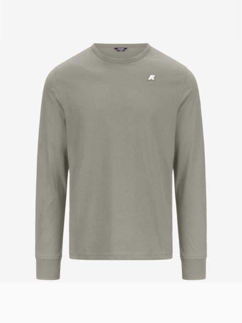 Airforce blue Men's Slim Fit Long Sleeve T-Shirt Elmer is a men's slim fit long sleeved t-shirt which combines an athletic look with the velvety texture of a lightweight pure cotton brushed jersey. This garment, ideal for leisure time, features a ribbed crew neck and K-Way lettering printed on the chest. - Lightweight cotton jersey fabric - Ribbed crew neck - Slim fit - White silicone logo patch Features Description: T-Shirts & Top, T-Shirt Gender: Man Season: Spring, Summer, Fall, Winter Composition Entire: 100% Cotton Style: K8136DW - Color: 550