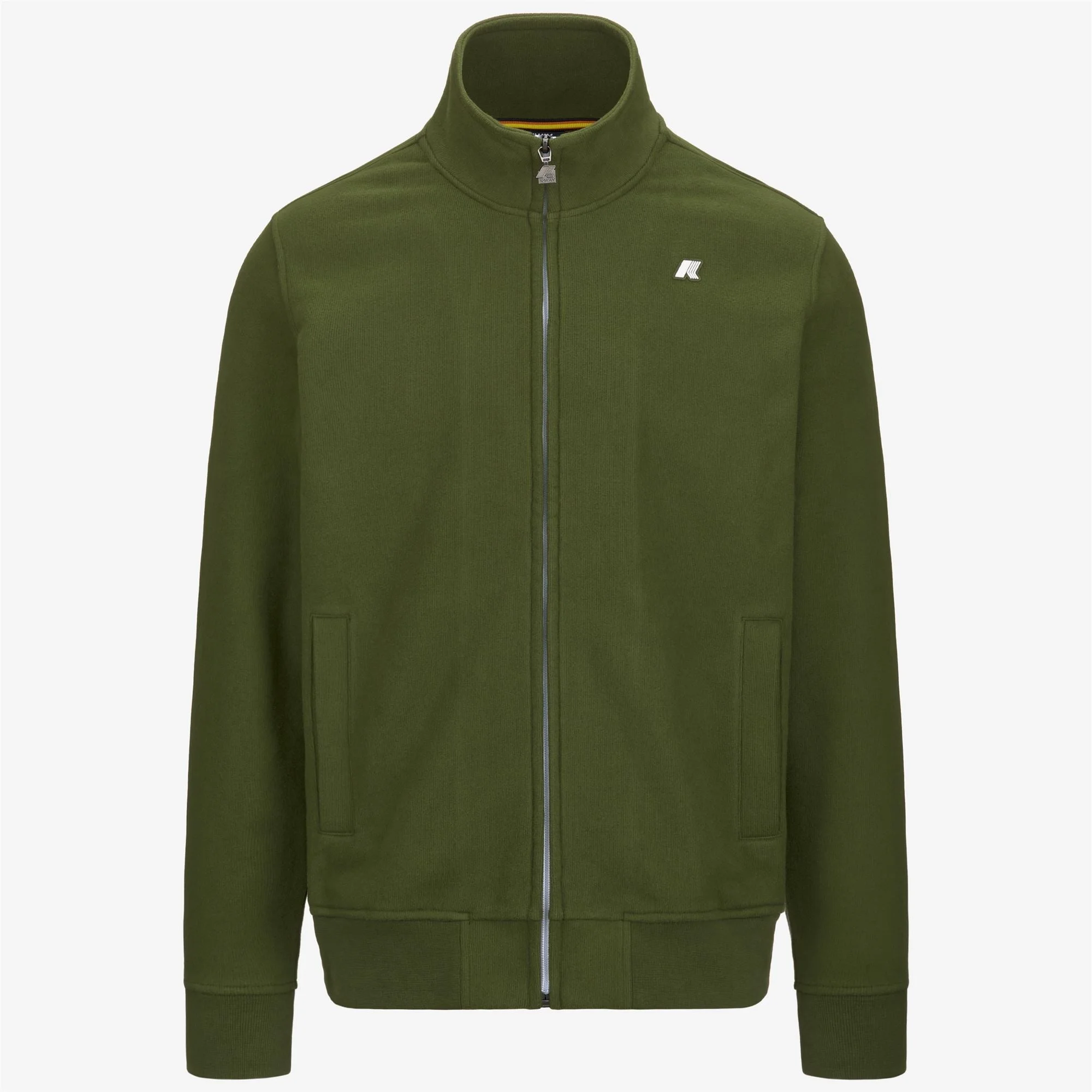 Cypress green Men's Fleece Jacket for Urban Leisure Finn is a men’s athleisure sweatshirt sporting a versatile and functional look, suitable for sports and leisure time. The style is made from cotton fleece with a very warm and cozy skin feel, featuring a comfortable brushed interior. This garment is characterized by K-Way full zip closure, high collar, and two inset pockets that complement its essential design. - Warm cotton fleece fabric with brushed interior - High collar - Ribbed hem and cuffs - Full zip closure at the front - 2 inset pockets - Regular fit - Silicone logo patch Features Description: Fleece, Jacket Gender: Man Season: Fall, Winter Composition Entire: 92% Cotton, 8% Polyamide Style: K8133HW - Color: H11