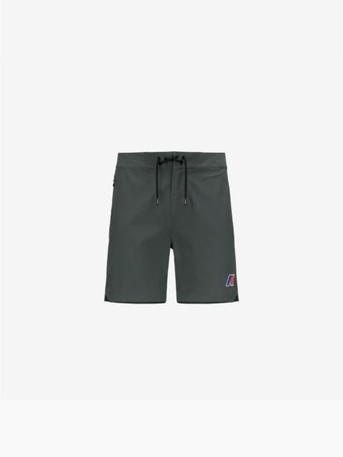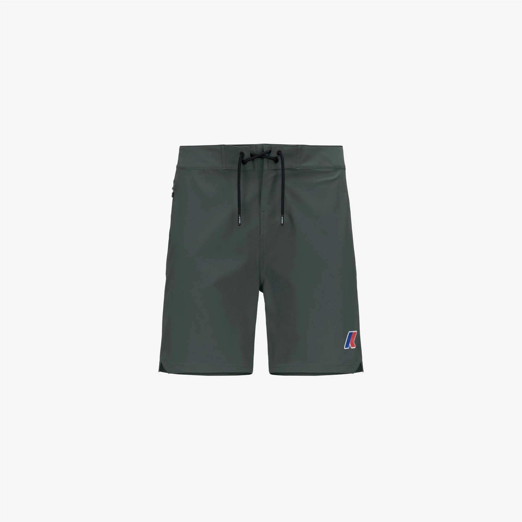 Blackish green Men's Quick-Dry Swimming Trunks with Zip Pocket HAXLEY LF is the form-fitting and dynamic swimming trunk, designed by K-Way with the surfer Leonardo Fioravanti. Inspired by the boardshorts that Leonardo wears during surf competitions, these swim trunks are made from quick-drying stretch fabric and feature a convenient zip pocket with an internal elastic cord, perfect for keeping your belongings secure during your water adventures. The K-Way silicone logo is apllied to the front. - Quick-dry, anti-UV, breathable fabric - Side pocket with zip - Regular fit - Silicone logo Features Description: Bathing Suits, Swimming Trunks Gender: Man Season: Spring, Summer Composition Entire: 12% Elastane, 35% Polyester, 53% Recycled Polyester Style: K6125LW - Color: WMR
