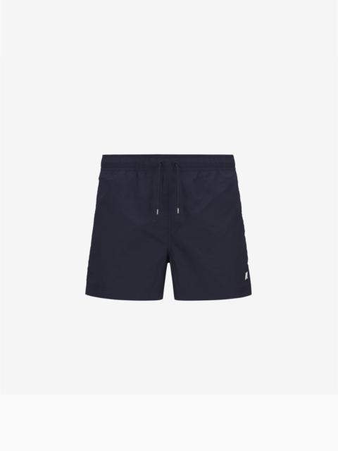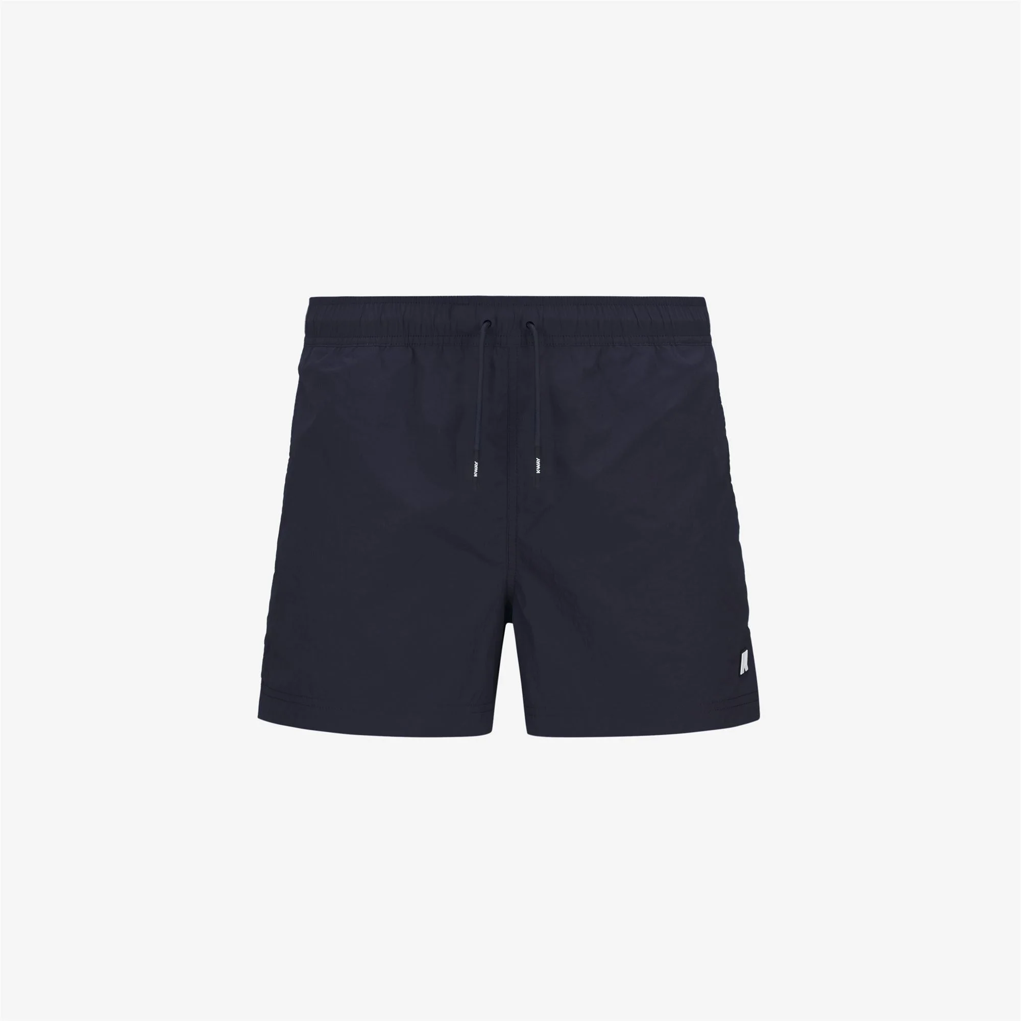 Blue Men's Quick-Dry Swimming Trunks with Pockets The Hazel men's short swimming trunks boast an essential yet versatile design. These trunks feature two pockets on the sides and one on the back, with laser-etched K-Way logo detailing. Made from quick-dry fabric, the garment also features an elasticated waistband, inner mesh briefs, and side vents that allow for unrestricted movement. - Quick-dry fabric - Mesh briefs - Elasticated waistband - Side pockets - Back pocket with strap closure - Inner coin pocket - Regular fit - Silicone logo patch Features Description: Bathing Suits, Swimming Trunks Gender: Man Season: Spring, Summer Composition Lining: 100% Polyester External: 100% Nylon Style: K8136LW - Color: K89
