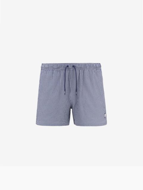 Checkered Green Men's Quick-Dry Swimming Trunks for Beach Wear The Hazel men's short swimming trunks boast an essential yet versatile look. These trunks feature two pockets on the sides and one on the back, with K-Way tape detailing. Made from quick-dry, checkered seersucker fabric, the garment also features an elasticated waistband, inner mesh briefs and side vents that allow for unrestricted movement. - Quick-dry seersucker fabric - Mesh briefs - Elasticated waistband - Side pockets - Back pocket with strap closure - Inner coin pocket - Regular fit - Silicone logo patch Features Description: Bathing Suits, Swimming Trunks Gender: Man Season: Spring, Summer Composition Entire: 100% Polyester Style: K8141LW - Color: AZX