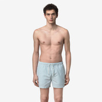 Hazel men's swimming trunks feature a versatile, functional design. Made from quick-dry technical fabric with a vertical striped pattern, they include external pockets, an internal coin pocket, an elasticated waistband, inner mesh brief, and side slits for unrestricted movement. - Quick-dry technical fabric - Crinkled texture - Inner mesh brief - Elasticated waistband with adjustable drawstring - Side pockets - Back pocket with strap fastening - Internal coin pocket - Regular fit - White silicone logo patch Features Description: Bathing Suits, Swimming Trunks Gender: Man Season: Spring, Summer Composition Entire: 100% Polyester Style: K2158HW - Color: C0E