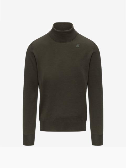 Deep blue Men's Merino Wool Turtleneck Pullover Henry is a men’s turtleneck pullover crafted from warm, easy-care merino wool. Its classic cut features a regular fit and ribbed trims for a comfortable feel. - Easy-care merino wool - Machine washable - Turtleneck - Ribbed collar, cuffs and hem - Regular fit - Tone-on-tone logo patch Features Description: KNITWEAR, Pull Over Gender: Man Season: Fall, Winter Composition : 100% Wool Style: K2142FW - Color: K89