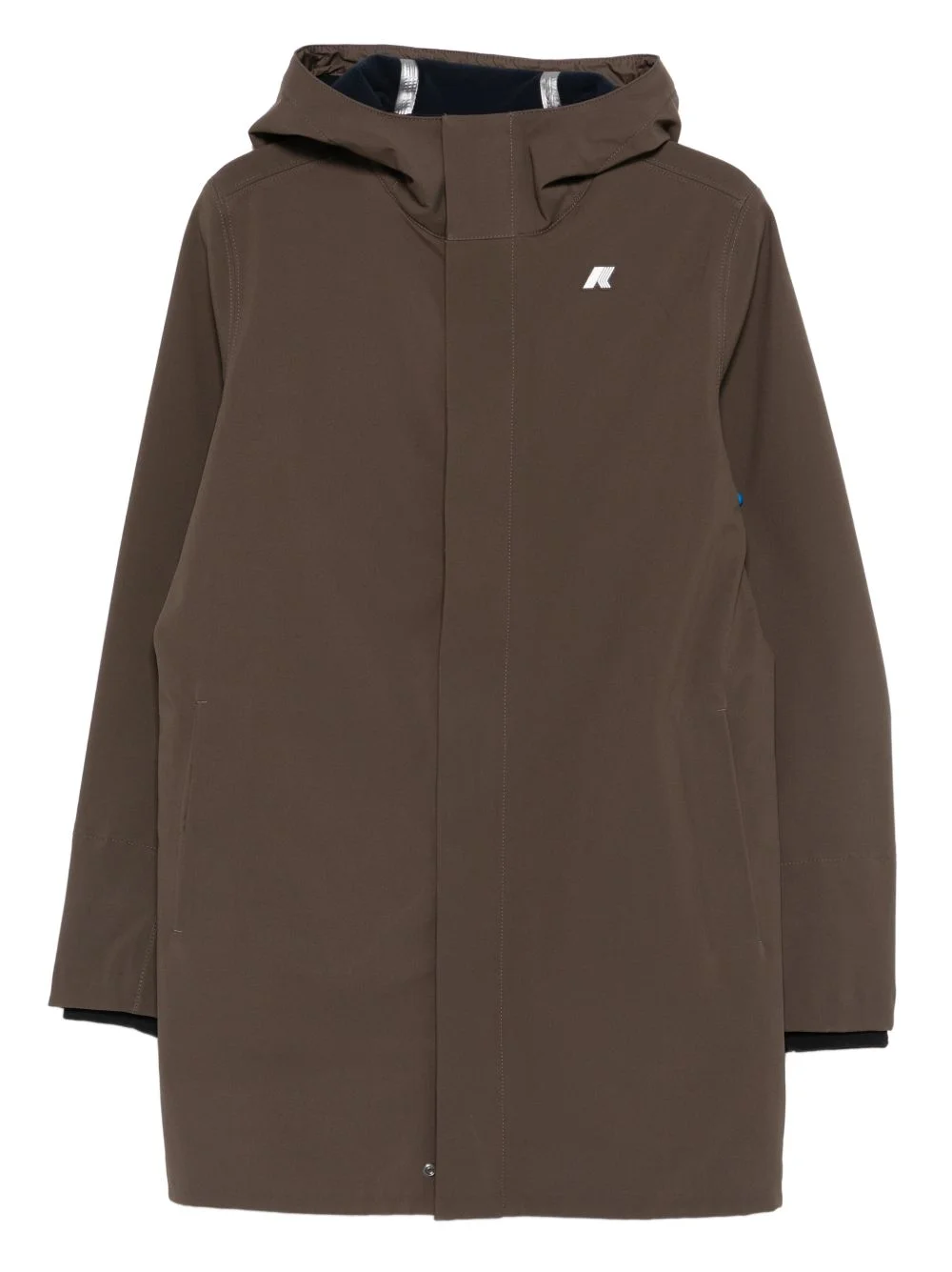 hooded jacket Highlights - Dark brown - Hooded - Logo detail - Long sleeves - Front button fastening - Straight hem Imported Composition Polyester 92%, Polyurethane 8% SIZE & FIT Model measurements Height 6 ft 1 in(1.85 m) Bust/Chest 38.58 in(98 cm) Hips 37 in(94 cm) Waist 30.31 in(77 cm) Washing instructions Read Manufacturer Guidelines