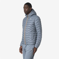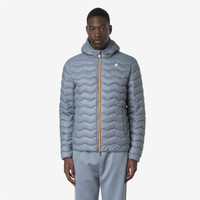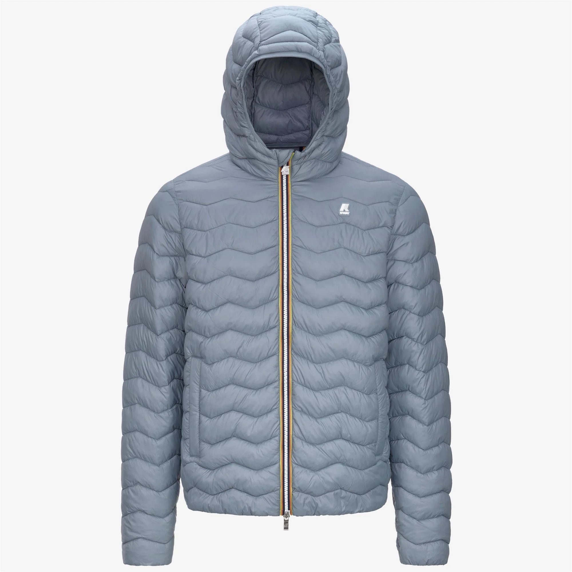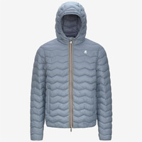 Grey Blue Men's Eco-Friendly Quilted City Jacket K-Way's Jack style is a classic men's jacket that demonstrates the brand’s commitment to protecting the planet. Crafted from recycled nylon that offers protection from wind and rain, it’s enhanced with wavy quilting for a distinctive graphic look and filled with Thermore® padding, a highly insulating fibre created from recycled plastic. - Water-repellent and windproof recycled nylon - Eco-friendly Thermore® padding - Wavy quilting - Medium warmth - Zip fastening - 2 snap button pockets - Hood with elastic cords - Adjustable hem with elastic cords - Slim fit - White silicone logo Features Description: Jackets, Short Gender: Man Season: Spring, Summer, Fall, Winter Composition External: 100% Nylon Lining: 100% Nylon Padding: 100% Recycled Polyester Style: K6121HW - Color: WA9