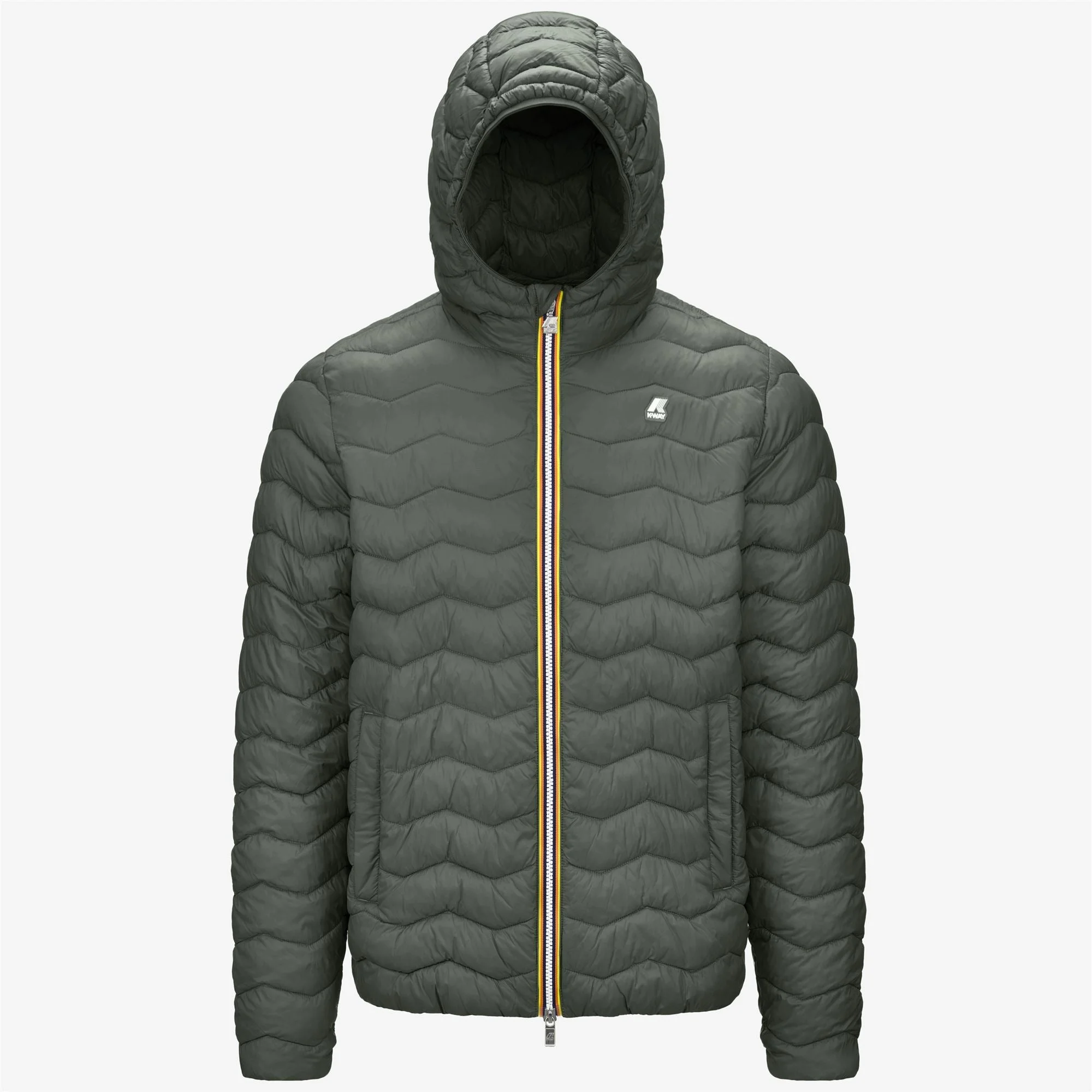 Blackish green Men's Eco-Friendly Quilted City Jacket K-Way's Jack style is a classic men's jacket that demonstrates the brand’s commitment to protecting the planet. Crafted from recycled nylon that offers protection from wind and rain, it’s enhanced with wavy quilting for a distinctive graphic look and filled with Thermore® padding, a highly insulating fibre created from recycled plastic. - Water-repellent and windproof recycled nylon - Eco-friendly Thermore® padding - Wavy quilting - Medium warmth - Zip fastening - 2 snap button pockets - Hood with elastic cords - Adjustable hem with elastic cords - Slim fit - White silicone logo Features Description: Jackets, Short Gender: Man Season: Spring, Summer, Fall, Winter Composition External: 100% Nylon Lining: 100% Nylon Padding: 100% Recycled Polyester Style: K6121HW - Color: WMR