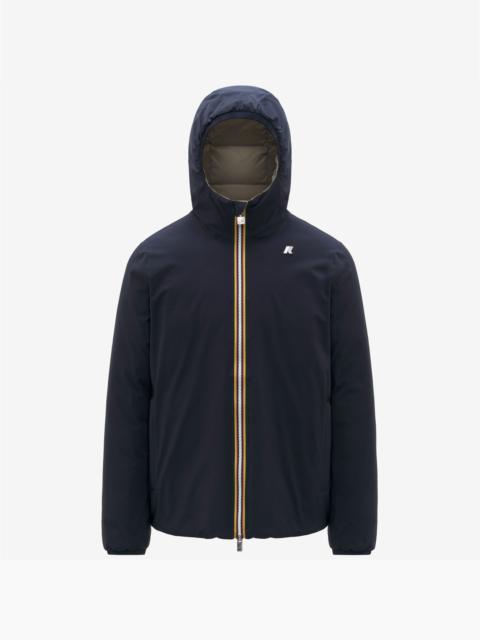 Airforce blue Men's Reversible Insulated Winter Jacket Designed for extreme winter temperatures whilst being kind to the planet, the Jack men's short jacket is insulated with Down padding: a highly insulating recycled fibre. Its reversible design combines a smooth technical fabric side with a contrast quilted nylon reverse. Complete with a hood, pockets, zip fastening and storm flap, adding an ultra-functional touch for maximum protection from the cold. - Waterproof, water-repellent and windproof recycled nylon ottoman - Windproof and breathable quilted nylon with down filling - Down padding - Ultra-warm - Reversible - Heat-taped seams - Adjustable hood with elastic cords and stoppers - Zip fastening - Elasticated cuffs - 2 zip pockets - 2 snap button pockets - Slim fit - White silicone logo patch Features Description: Jackets, Short Gender: Man Season: Fall, Winter Composition External: 24% Poliuretane, 76% Recycled Polyester Lining: 100% Recycled Nylon Padding: 90% Duck Down, 10% Duck Feather Style: K8127WW - Color: B2H