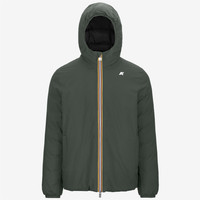 Blackish Green Men's Reversible Down Insulated Winter Jacket Designed for extreme winter temperatures whilst being kind to the planet, the Jack men's short jacket is insulated with Down padding: a highly insulating recycled fibre. Its reversible design combines a smooth technical fabric side with a contrast quilted nylon reverse. Complete with a hood, pockets, zip fastening and storm flap, adding an ultra-functional touch for maximum protection from the cold. - Waterproof, water-repellent and windproof recycled nylon ottoman - Windproof and breathable quilted nylon with down filling - Down padding - Ultra-warm - Reversible - Heat-taped seams - Adjustable hood with elastic cords and stoppers - Zip fastening - Elasticated cuffs - 2 zip pockets - 2 snap button pockets - Slim fit - White silicone logo patch Features Description: Jackets, Short Gender: Man Season: Fall, Winter Composition External: 24% Poliuretane, 76% Recycled Polyester Lining: 100% Recycled Nylon Padding: 90% Duck Down, 10% Duck Feather Style: K8127WW - Color: AF0