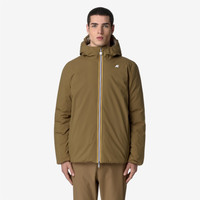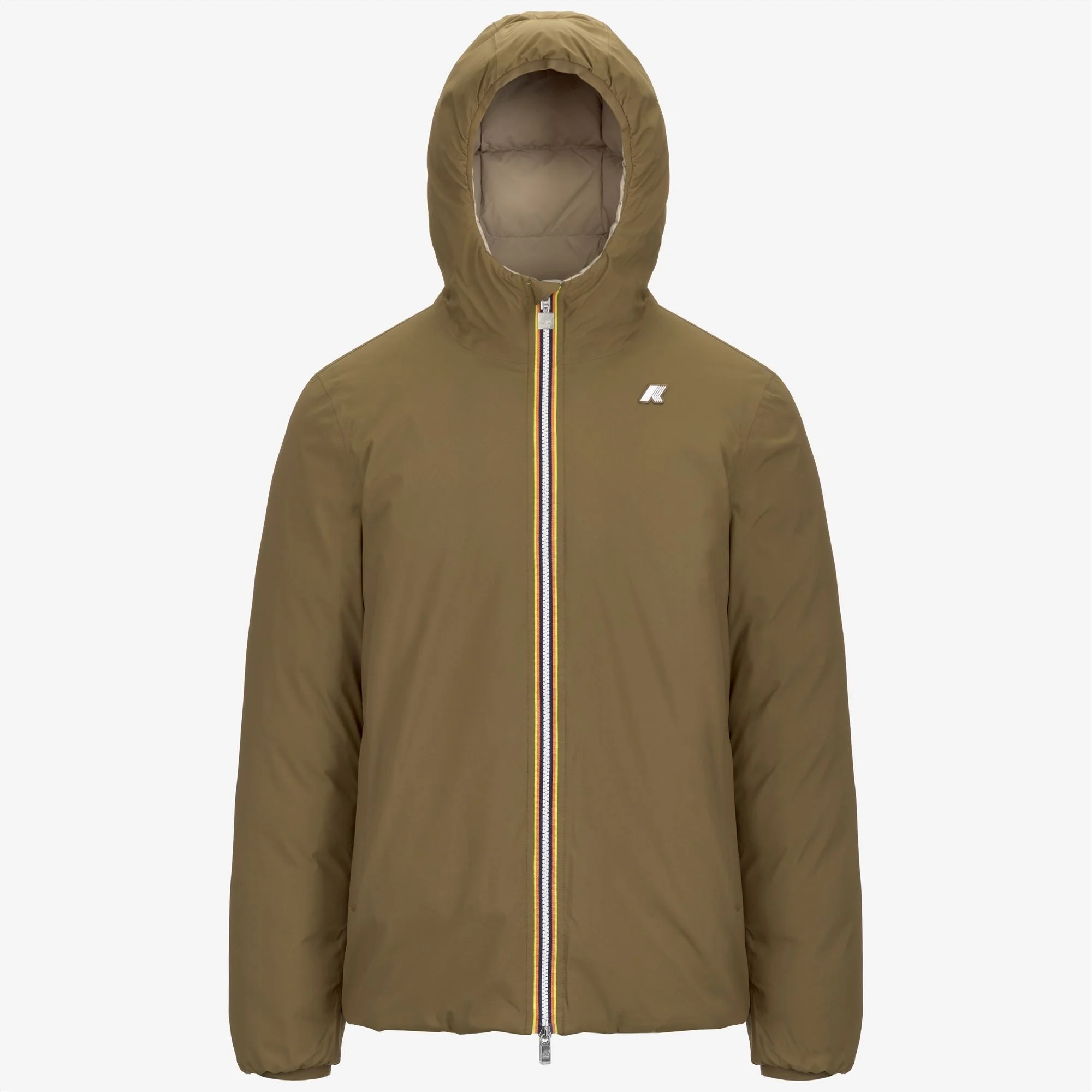 Beige green Men's Reversible Down Insulated Short Jacket Designed for extreme winter temperatures whilst being kind to the planet, the Jack men's short jacket is insulated with Down padding: a highly insulating recycled fibre. Its reversible design combines a smooth technical fabric side with a contrast quilted nylon reverse. Complete with a hood, pockets, zip fastening and storm flap, adding an ultra-functional touch for maximum protection from the cold. - Waterproof, water-repellent and windproof recycled nylon ottoman - Windproof and breathable quilted nylon with down filling - Down padding - Ultra-warm - Reversible - Heat-taped seams - Adjustable hood with elastic cords and stoppers - Zip fastening - Elasticated cuffs - 2 zip pockets - 2 snap button pockets - Slim fit - White silicone logo patch Features Description: Jackets, Short Gender: Man Season: Fall, Winter Composition External: 24% Poliuretane, 76% Recycled Polyester Lining: 100% Recycled Nylon Padding: 90% Duck Down, 10% Duck Feather Style: K8127WW - Color: ASD