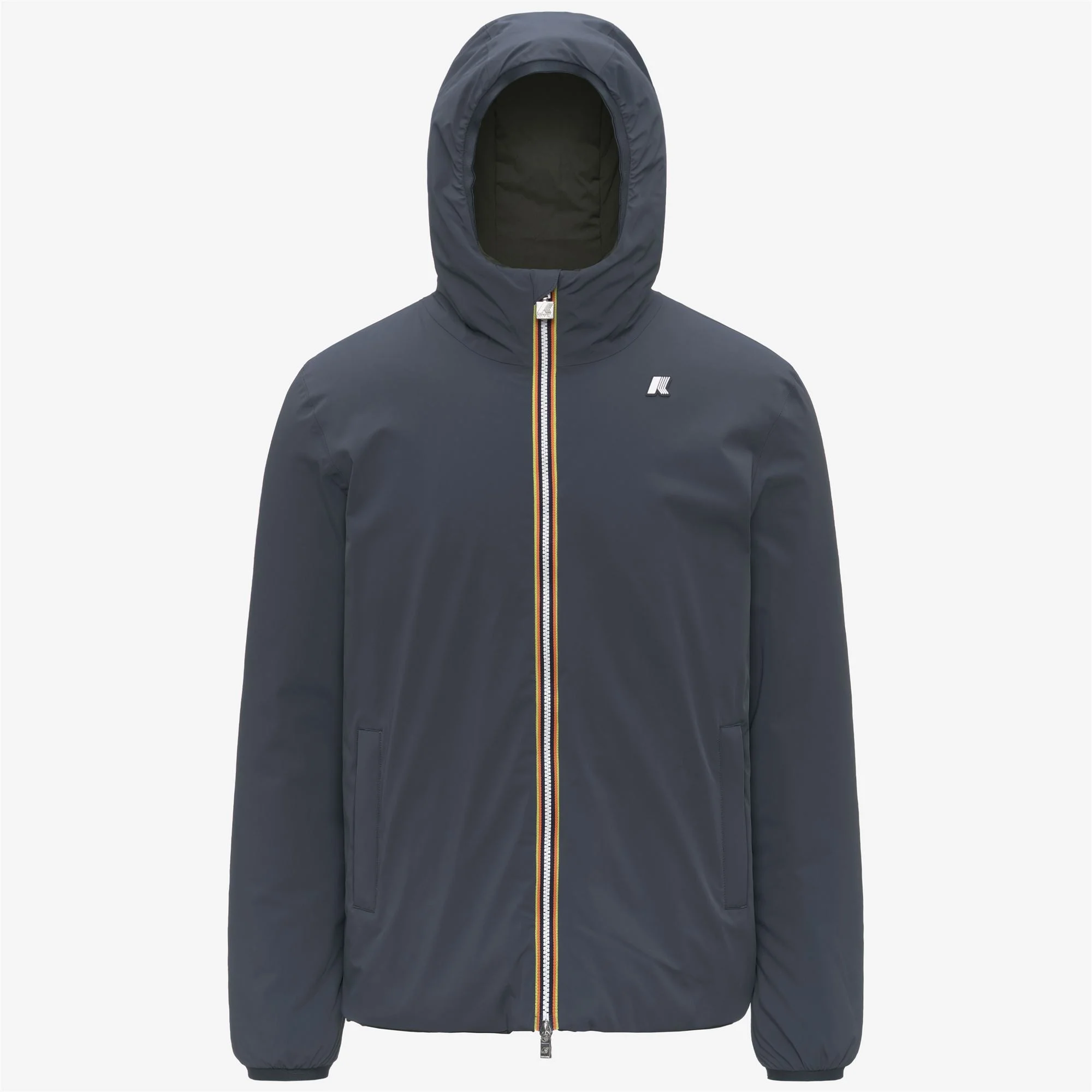 The Jack men’s jacket boasts a slim fit and a reversible design for endless uses, combining a waterproof stretch polyester layer with a contrast windproof polyester reverse. Insulated with synthetic padding for a mid level of warmth perfect for in between seasons, the design features heat-taped seams for thermal insulation and superior comfort during outdoor activities. - Waterproof, water-repellent, windproof and breathable stretch polyester - Windproof and water-repellent polyester - Synthetic padding - Medium warmth - Reversible - Heat-taped seams - Adjustable hood with elastic cords - Zip fastening - Elasticated cuffs - 2 zip pockets - 2 snap button pockets - Slim fit - White silicone logo Features Description: Jackets, Short Gender: Man Season: Fall, Winter Composition Padding: 100% Polyester External: 8% Elastane, 92% Nylon Lining: 100% Polyester Style: K6128VW - Color: BC0