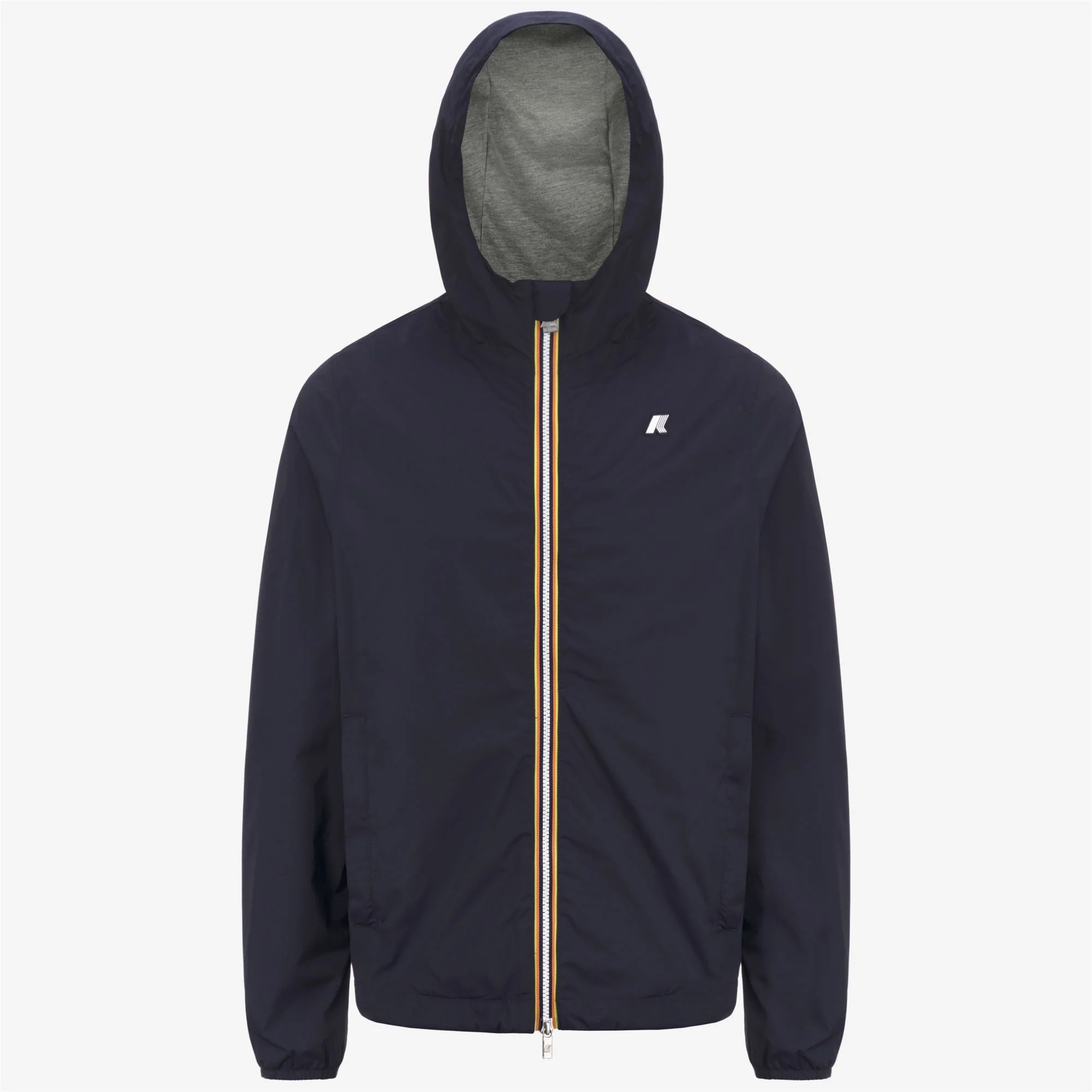 Blue Men's Weather-Resistant Stretch Nylon Jacket Jack is a men's slim-fit jacket, made from weather-resistant stretch nylon with soft grey melange cotton jersey lining on the front and back only, which provides superior comfort, excellent protection and a comfortable feel on the skin. The interior is finished with meticulous attention to detail: there are heat-taped seams and the iconic multicoloured K-Way tape at the waist for a distinctive signature touch. - Waterproof, windproof, breathable stretch nylon fabric - Cotton jersey lining - Heat-taped seams - Adjustable hood - Ventilation cut-out at back - Zip closure - Elasticated cuffs and hem - Adjustable drawstring hem - 2 zipped pockets - Slim fit - White silicone logo Features Description: Jackets, Short Gender: Man Season: Spring, Summer Composition Lining B: 100% Nylon External: 5% Elastane, 95% Nylon Lining A: 100% Cotton, 35% Polyester Style: K3123UW - Color: K89