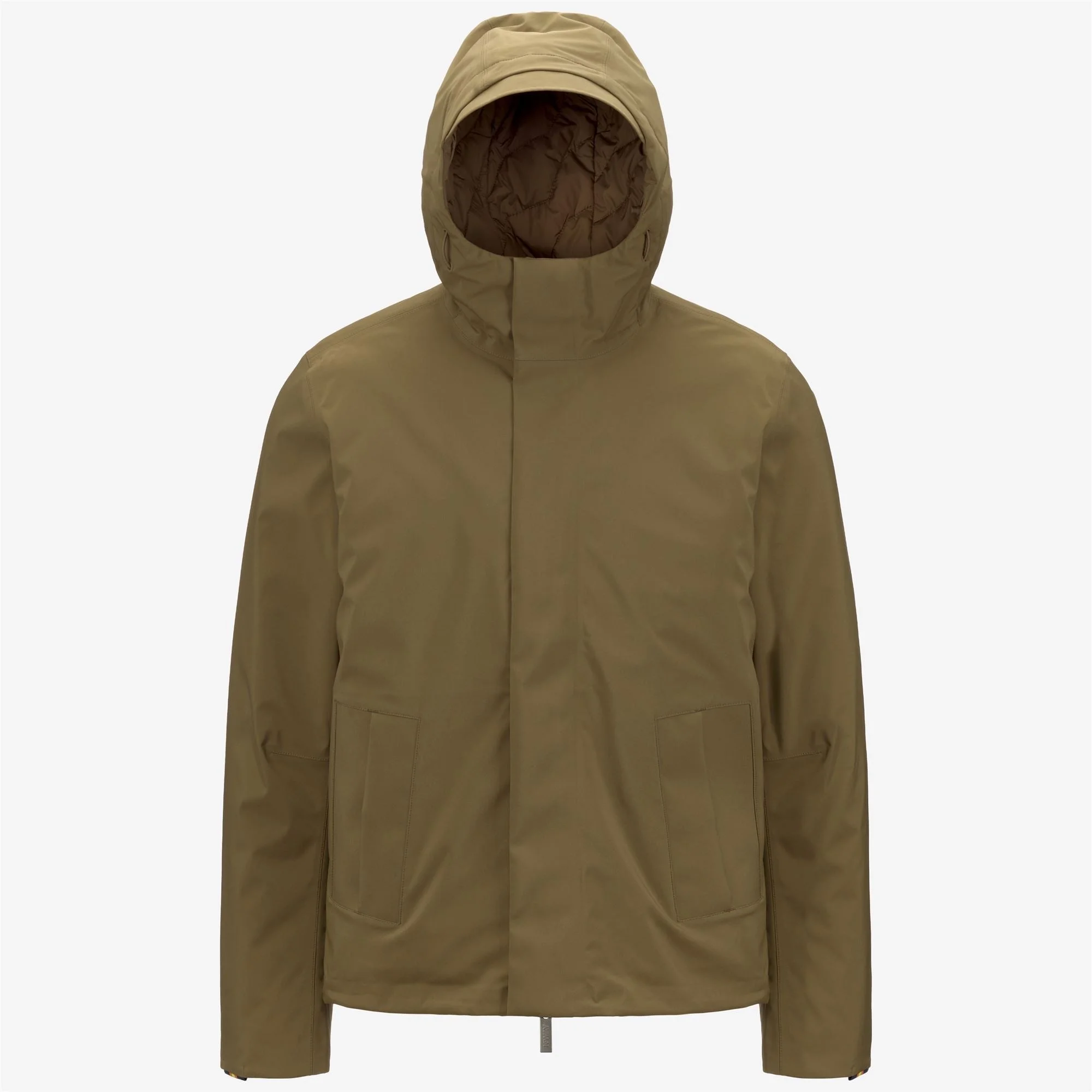 Brown Green Men's Short Winter Jacket with Padding Jacken is a men's short jacket which is ideal for winter, complementing everyday looks with its sporty appeal and clean design with no logos on the front. This cozy jacket with zip closure and elastic bottom hem features a three-layer technical fabric with a nylon outer layer, an insulating membrane and a jersey lining with contrasting heat-taped seams. The warm floating padding and comfortable internal quilting provide optimal protection from the harshest temperatures. This style also features a high collar, flap pockets, and the detail of the K-Way tape on the cuff. - Three-layer stretch, water-repellent, windproof fabric - Floating synthetic padding - High warmth grade - Zip closure - Flap pockets - Adjustable bottom hem - Adjustable hood - Heat-taped seams - Regular fit - K-Way tape detail on the cuff Features Description: Jackets, Short Gender: Man Season: Fall, Winter Composition Entire: 76% Polyester, 24% Poliuterano Termopla Lining: 100% Polyester Padding: 100% Polyester Style: K7132BW - Color: AR6
