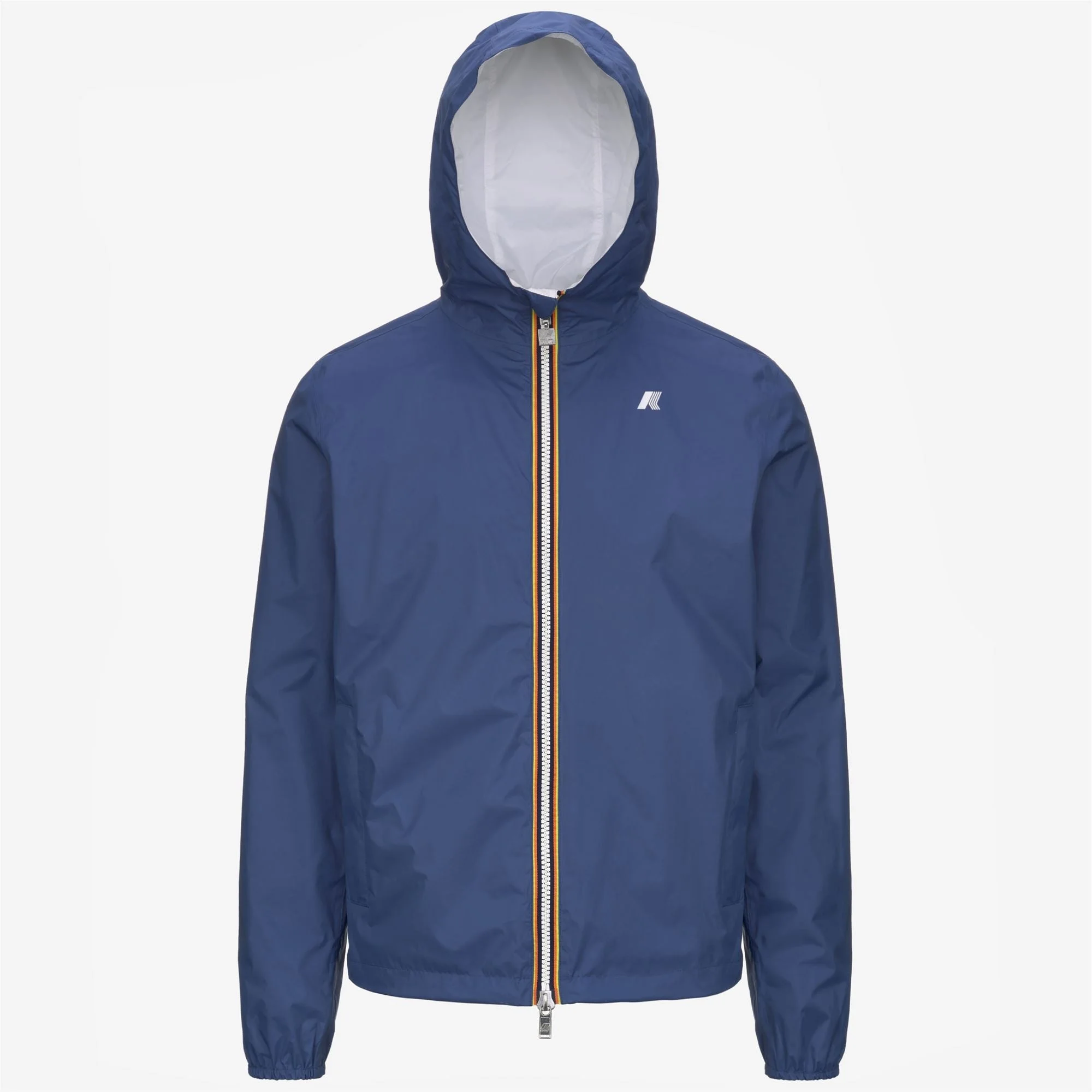 Blue Men's Reversible Short Jacket for Variable Weather Jake is a men's short jacket with a packable and reversible design, made from recycled material featuring one side in coated nylon and the other side in smooth nylon with a contrasting color. The design pays meticulous attention to detail: the seams are heat-sealed, and the hems are finished with elastic inserts to provide a snug and comfortable fit for quick and easy wear. - Waterproof, windproof and breathable nylon outer layer - Shiny water-repellent nylon reverse - Reversible - Heat-taped seams - Non-detachable, adjustable drawstring hood - Adjustable drawstring hem - Zip fastening - Elasticated cuffs - 2 zip pockets - 2 snap button pockets - Slim fit - White silicone logo patch Features Description: Jackets, Short Gender: Man Season: Spring, Summer Composition External: 100% Nylon Lining: 100% Nylon Style: K2124EW - Color: ANP