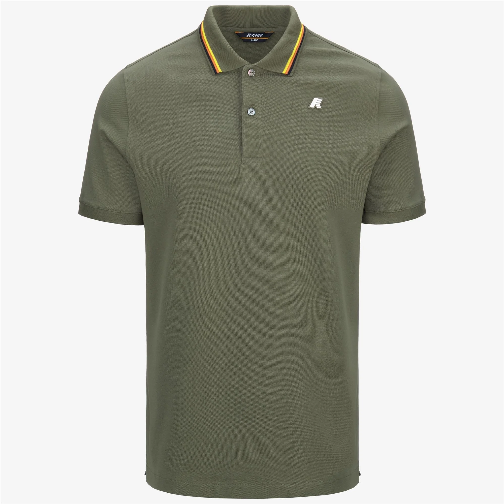 Lichen green Men's Stretch Cotton Polo Shirt for City Wear The Jud men's polo shirt is crafted from stretch cotton pique: ultra-soft and extremely flexible. The collar is detailed with a striped trim inspired by K-Way's iconic tape, whilst side slits provide optimal freedom of movement. - Stretch pique - Ribbed collar with striped trim - Two-button fastening - Logo buttons - Side slits - Slim fit - White silicon logo patch Features Description: Polo Shirts, Polo Gender: Man Season: Spring, Summer Composition Entire: 95% Cotton, 5% Elastane Style: K1125DW - Color: V15