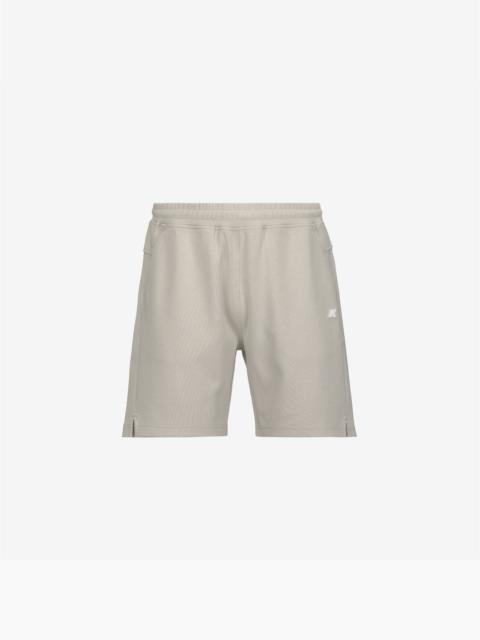 Black men's relaxed-fit sports shorts with pockets and drawstrings Keny is men's sporty-chic shorts with a relaxed fit, perfect for travel, sports, and leisure time. The garment is made from soft technical interlock with a high percentage of cotton to ensure excellent freedom of movement. The sportswear inspiration is emphasized by the adjustable waist with drawstrings and the two size pockets. The white silicone logo patch adds a minimalist graphic detail. - Stretch interlock fabric - Elasticated waistband with internal adjustable drawstring - Two side pockets - Regular fit - Flag logo on the back Features Description: Shorts, Sport Shorts Gender: Man Season: Spring, Summer Composition Entire: 80% Cotton, 6% Elastane, 14% Polyester Style: K2122XW - Color: USY
