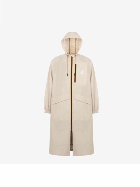Black unisex long recycled nylon trench coat with hood Pradel is a waterproof trench that blends the functionality of a parka with the elegance of a hooded trench coat. Its oversized trapeze shape can be layered over a coat. Fully sealed seams ensure complete waterproofing, while side snap buttons allow easy access to the pockets. Sleeves are adjustable with a press-stud system. We recommend sizing down if you prefer a more streamlined trench-style fit. - K-Way | Sœur logo - Waterproof - Windproof - Breathable - Fully taped seams - Adjustable hood with elastic drawcords - Side openings with press studs - Adjustable cuffs with press studs - 2 front pockets - 1 front zip pocket - Oversized fit Features Description: Jackets, Long Gender: Unisex Season: Fall, Winter Composition Entire: 100% Recycled Nylon Style: K81487W - Color: TD6