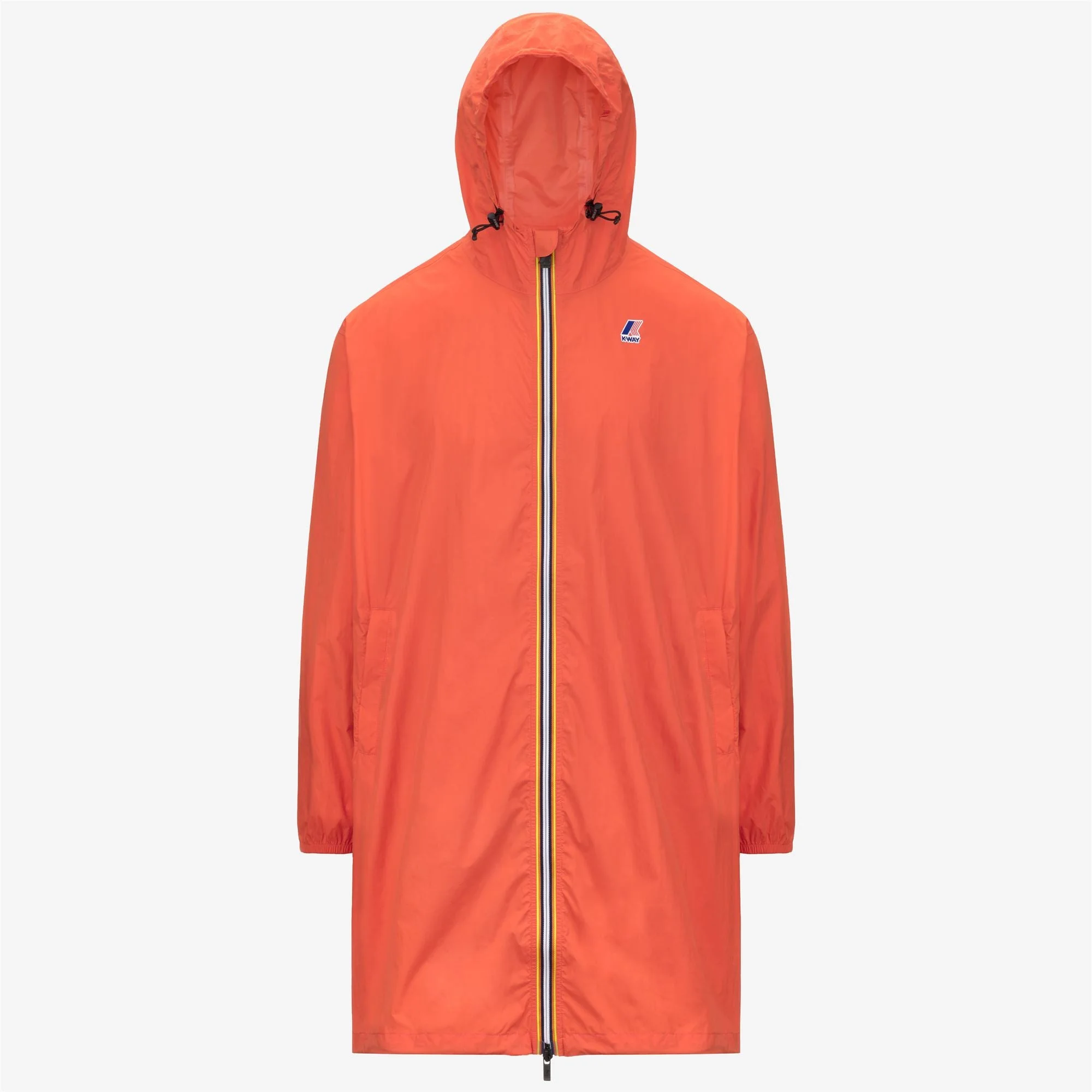 Orange unisex Long Waterproof Jacket with Packable Design Eiffel is a unisex long raincoat, made from innovative micro ripstop 4.0 fabric, 100% recycled, which is even more weather-resistant and breathable due to its 10K water-resistance and 10K breathability rating, with heat-taped inner seams that guarantee excellent insulation from the wind or rain. The highlight of this style is its comfy, relaxed fit, together with the small volume it occupies when folded and packed in one of its two pockets. Ideal to be carried in a bag or backpack, it is designed to easily withstand sudden rain or wind. - Waterproof, water-repellent, windproof, breathable ripstop nylon fabric - DWR (Durable Water Repellent) treatment - Water resistance: 10000 mm water column - Breathability: 10000 g/sqm/24h - Packable - Heat-taped seams - Adjustable hood with drawstring - Zip closure - Inner windproof flap - Ventilation cut-out on the back - Elasticated cuffs - 2 zipped pockets - Loose fit Features Description: Jackets, Long Gender: Unisex Season: Spring, Summer, Fall, Winter Composition Entire: 100% Recycled Nylon Style: K2132XW - Color: 415
