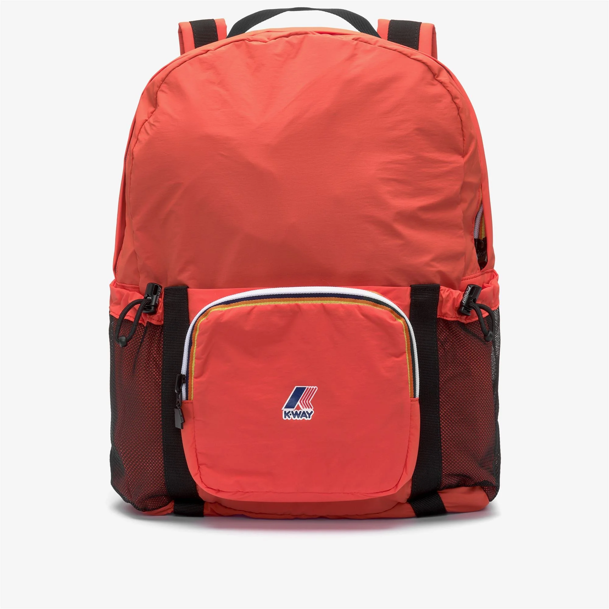 Michel is a packable backpack that concentrates maximum practicality in a minimum volume, perfect to always carry with you and be ready to use in just a few steps. Made from waterproof ripstop nylon, it features a practical zip closure and adjustable padded shoulder straps. Various pockets and a practical carabiner allow you to attach keys and store objects to keep close at hand during outings. - Waterproof, water-repellent, windproof ripstop fabric < /li> - Nylon lining - Main compartment with zip closure - 2 mm webbing handle< /p> - Adjustable padded shoulder straps - Front zip pocket with carabiner - Mesh pockets with elastic cord - Internal mesh pocket - Colorful printed logo - Descriptive print on the pocket - Size: 42 cm x 32 cm x 14 cm Features Description: Bags, Backpack Gender: Unisex Season: Spring, Summer, Fall, Winter Composition Entire: 100% Nylon External: 100% Recycled Nylon Internal: 100% Polyester Style: K5135PW - Color: 415