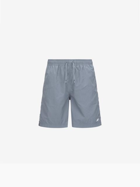 Black Grey Men's Quick-Dry Swimming Trunks with Pockets The Lenon men's long swimming trunks boast an essential yet versatile design. These trunks feature two pockets on the sides and one on the back, with laser-etched K-Way logo detailing. Made from quick-dry fabric, the garment also features an elasticated waistband, inner mesh briefs and side vents that allow for unrestricted movement. - Quick-dry fabric - Mesh briefs - Elasticated waistband - Side pockets - Back pocket with strap closure - Inner coin pocket - Regular fit - Silicone logo patch Features Description: Bathing Suits, Swimming Trunks Gender: Man Season: Spring, Summer Composition Entire: 100% Polyester Lining: 100% Polyester External: 100% Nylon Style: K8136MW - Color: USY