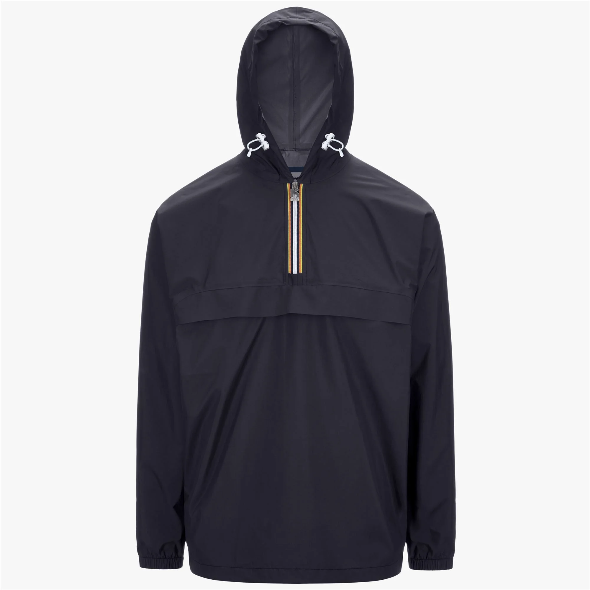 Blue Unisex Packable Anorak Jacket for Rain Protection Leon is a unisex short anorak jacket that pays homage to the first iconic K-Way packable rain jacket, designed in 1965. It features a half zip closure in the brand's signature colours with the original puller from the 1965 jacket, an adjustable drawstring hood, and elasticated cuffs for effective rain and wind protection. The extremely compact volume of this jacket when folded into its pocket makes it the perfect companion to pack in your bag or backpack to easily withstand unexpected weather changes. - Recycled ripstop nylon, waterproof, windproof, breathable - Packable - Heat-taped seams - Adjustable hood with drawstring - Half zip closure - 1965 K-Way zip puller - Elasticated cuffs - Zipped packable pocket - Adjustable drawstring bottom hem - Regular fit Features Description: Jackets, Mid Gender: Unisex Season: Spring, Summer Composition Entire: 100% Recycled Nylon Style: K2142BW - Color: K89